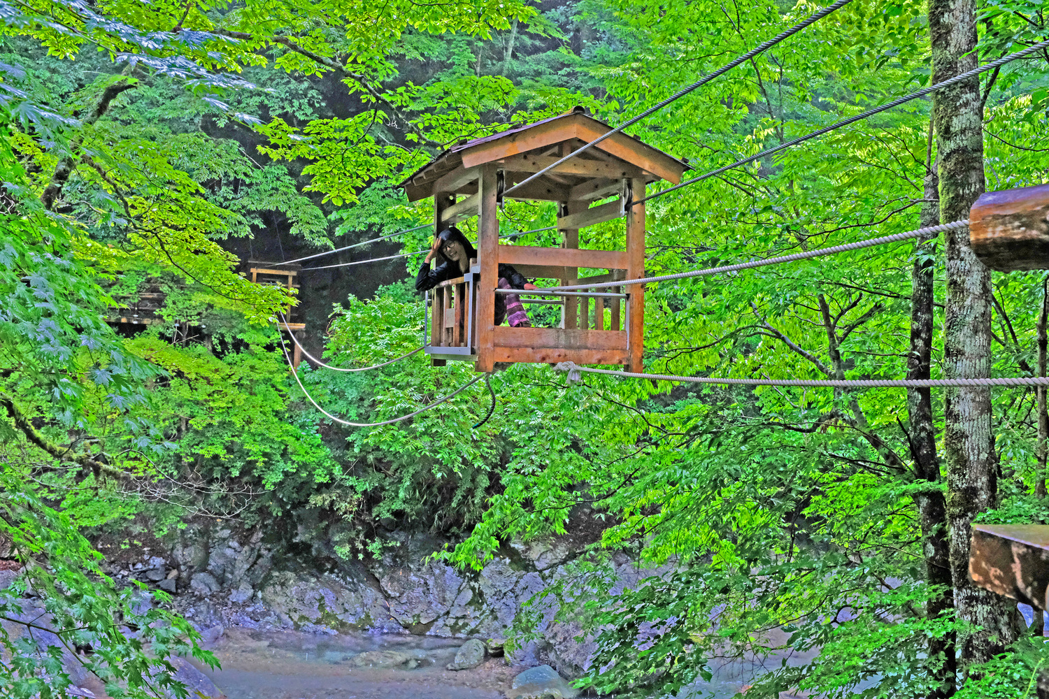 The highlight for me was actually the Wild Monkey Bridge (野猿, yaen), right next to the smaller of the two bridges. More than a bridge, this really is a suspended wooden cart you sit in to pull yourself across. Iya Valley truly treats us to one novel experience after another!