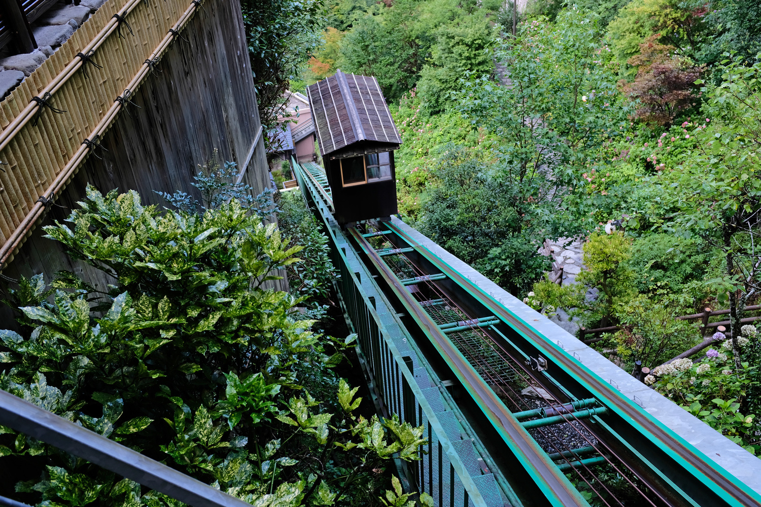 Back at the hotel, more thrills await us. One of Hotel Kazaurabashi’s highlights is actually its open-air bath further up the mountain… accessible by a private gondola! Yes, you can enjoy onsen with full aerial views of the valley.