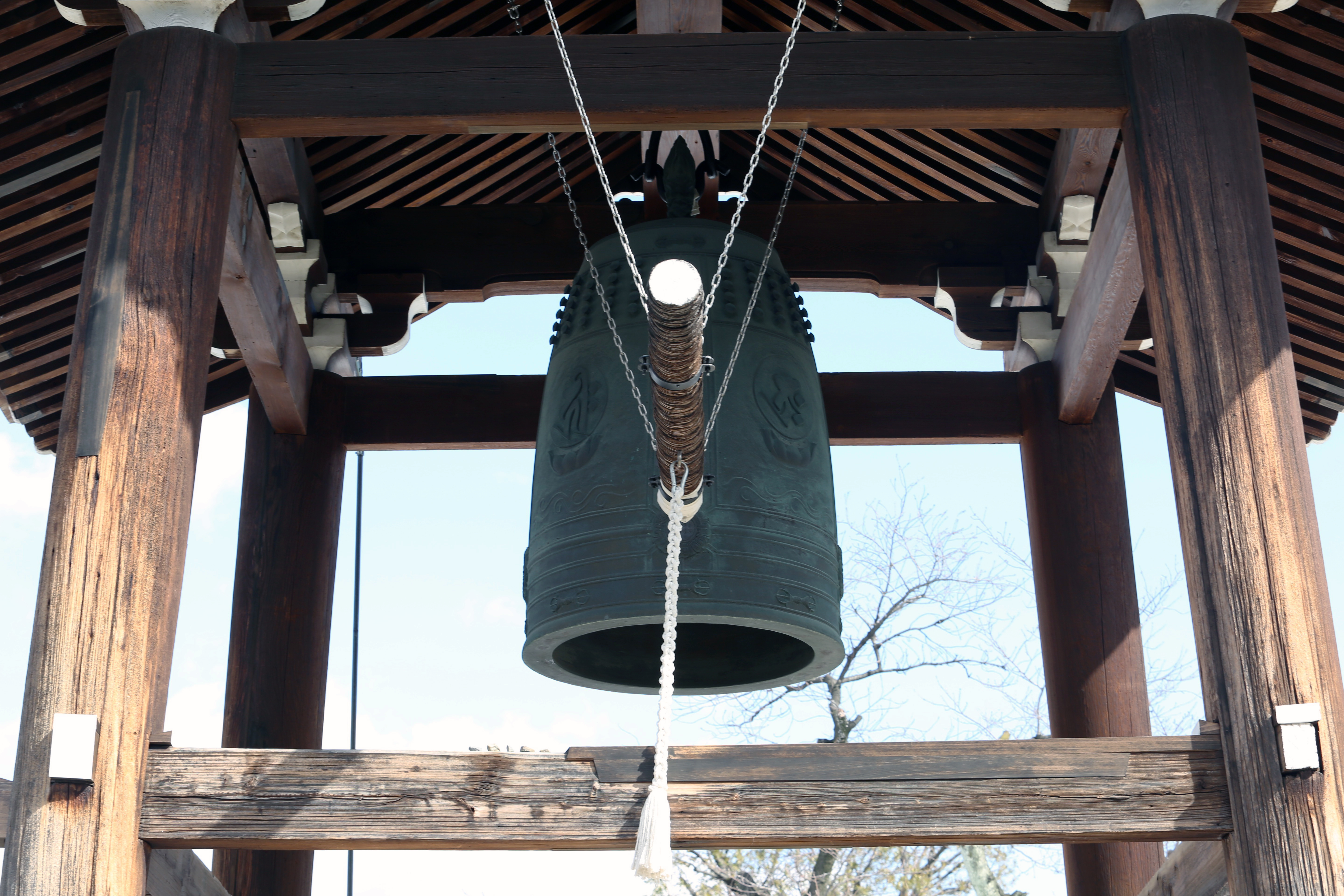 - If there is a bell, hold onto the rope with both hands and give it a firm shake.