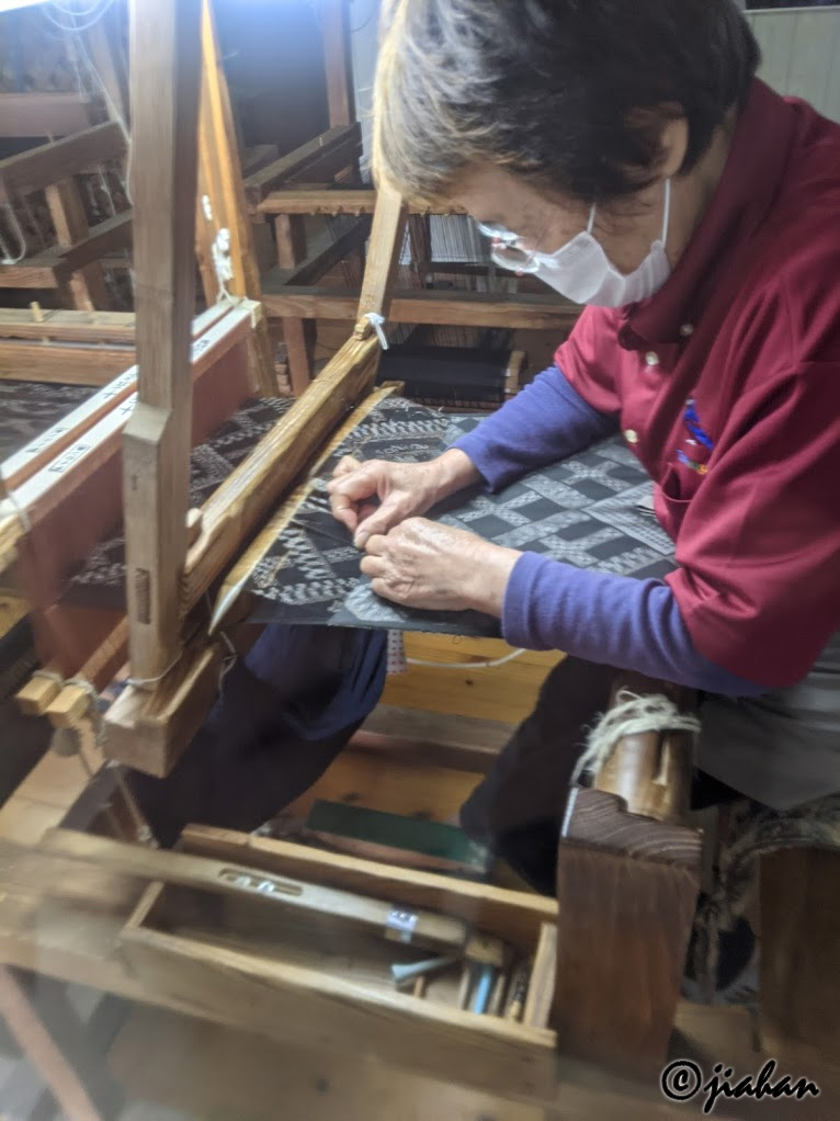 The final step: weaving. The individually dyed threads are finally put together, and any mistakes are manually remedied. The craftswoman told me that she can only weave 30cm in an 8-hour day.