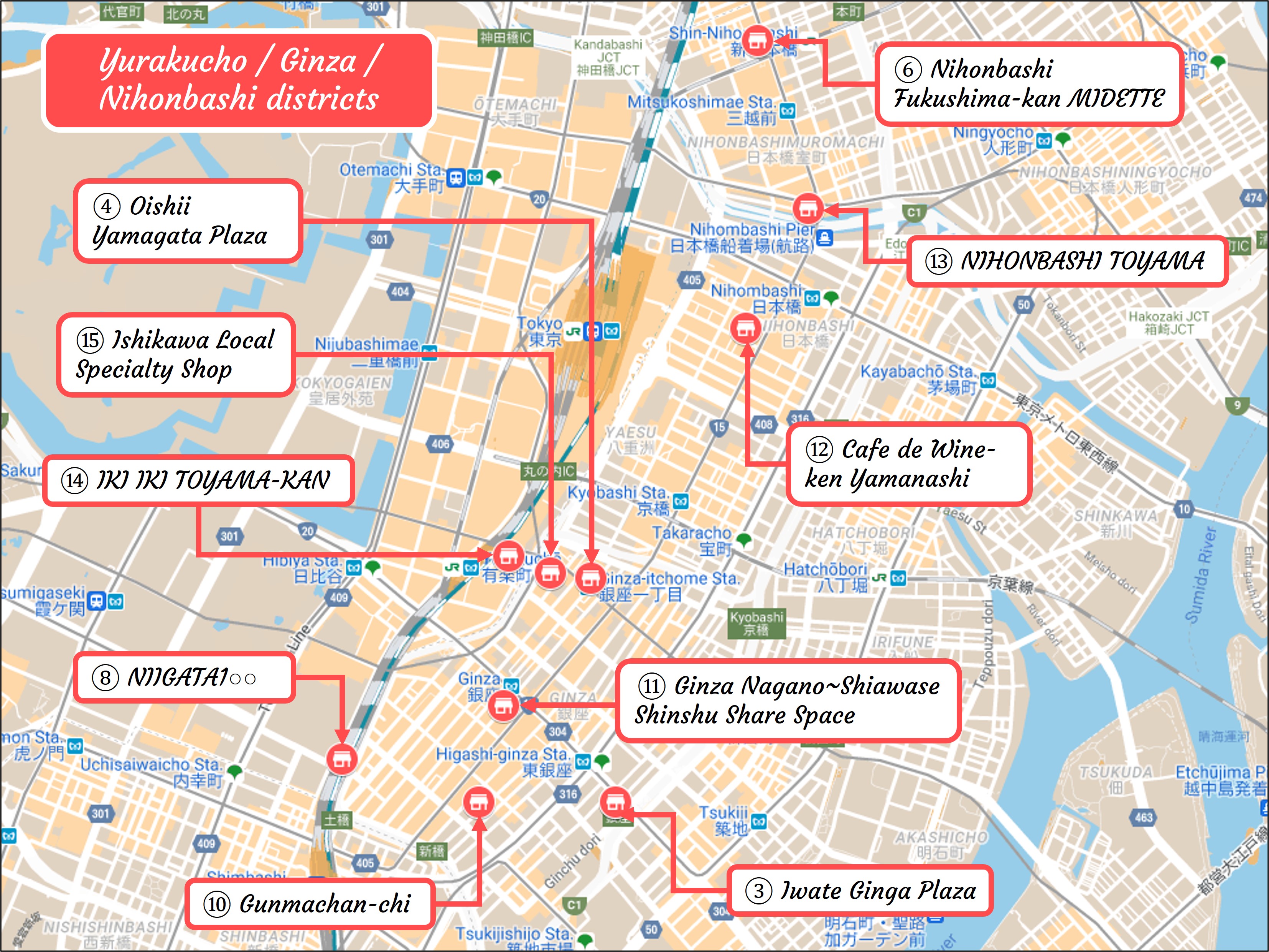 Antenna shops in the Yurakucho, Ginza, and Nihonbashi districts. (Image credit: Google Maps)