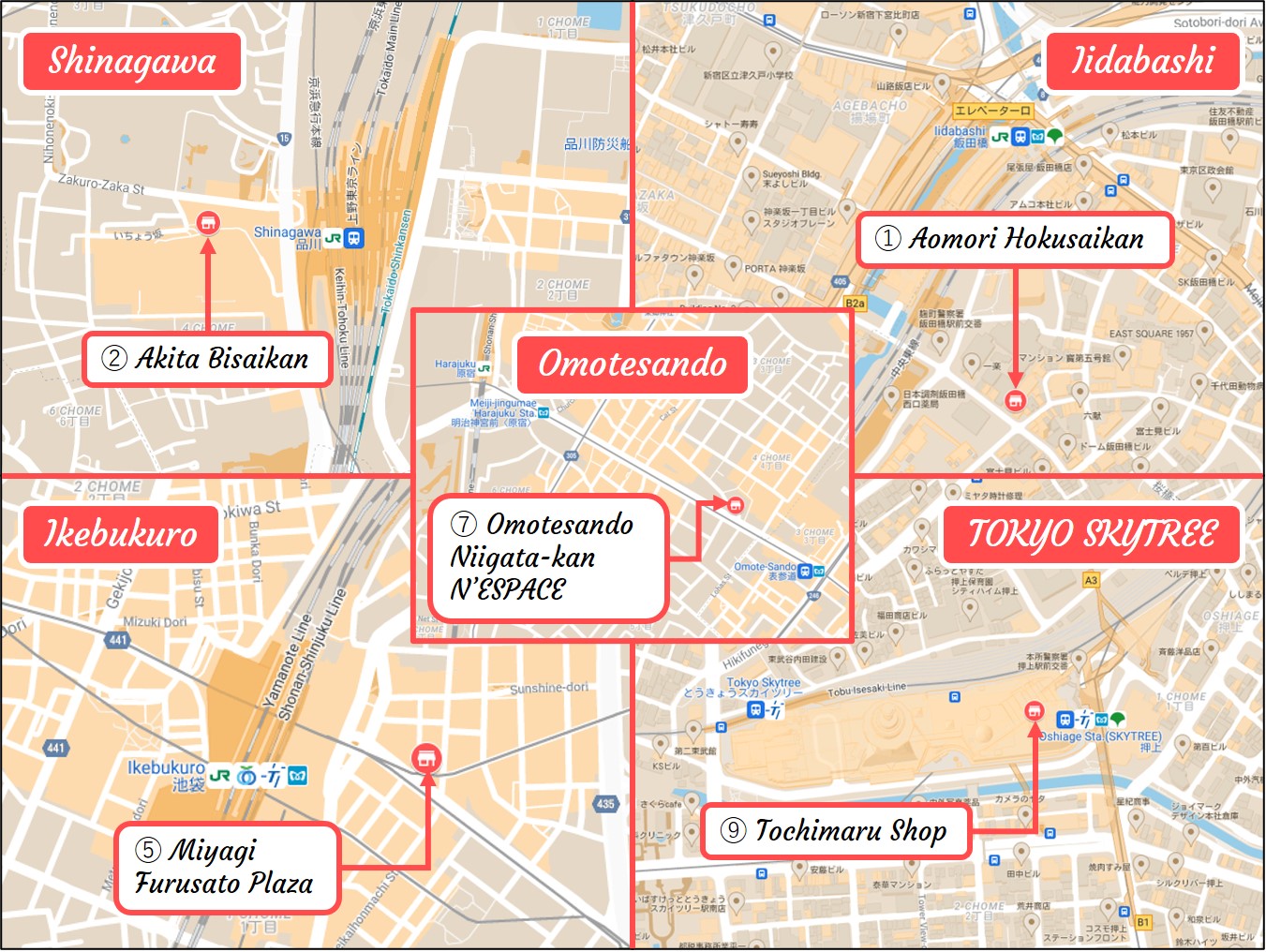 Antenna shops in other parts of the Tokyo Metropolitan Area. (Image credit: Google Maps)