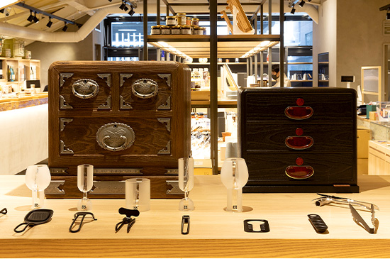 Established in 2014, the shop was set up with the concept of enabling visitors to explore the different local food products and traditional handicrafts of Ishikawa. It is made up of three floors altogether, with the basement floor being a retail space where all of Ishikawa’s local specialty food products are on sale, including processed seafood products, sake, condiments, and more.