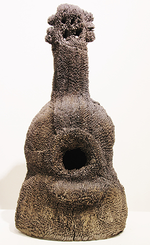 Here in Kamae Kazumi’s artwork titled: Mr. Masato’s Guitar (まさとさんのギター Masato-san no Gitā) we can see the use of rice-sized pellets of clay to grant her representation of a guitar an almost organic shape. The injection of the artist and her personal life into the art is also fascinating as we are introduced to a titular character, Mr. Masato.