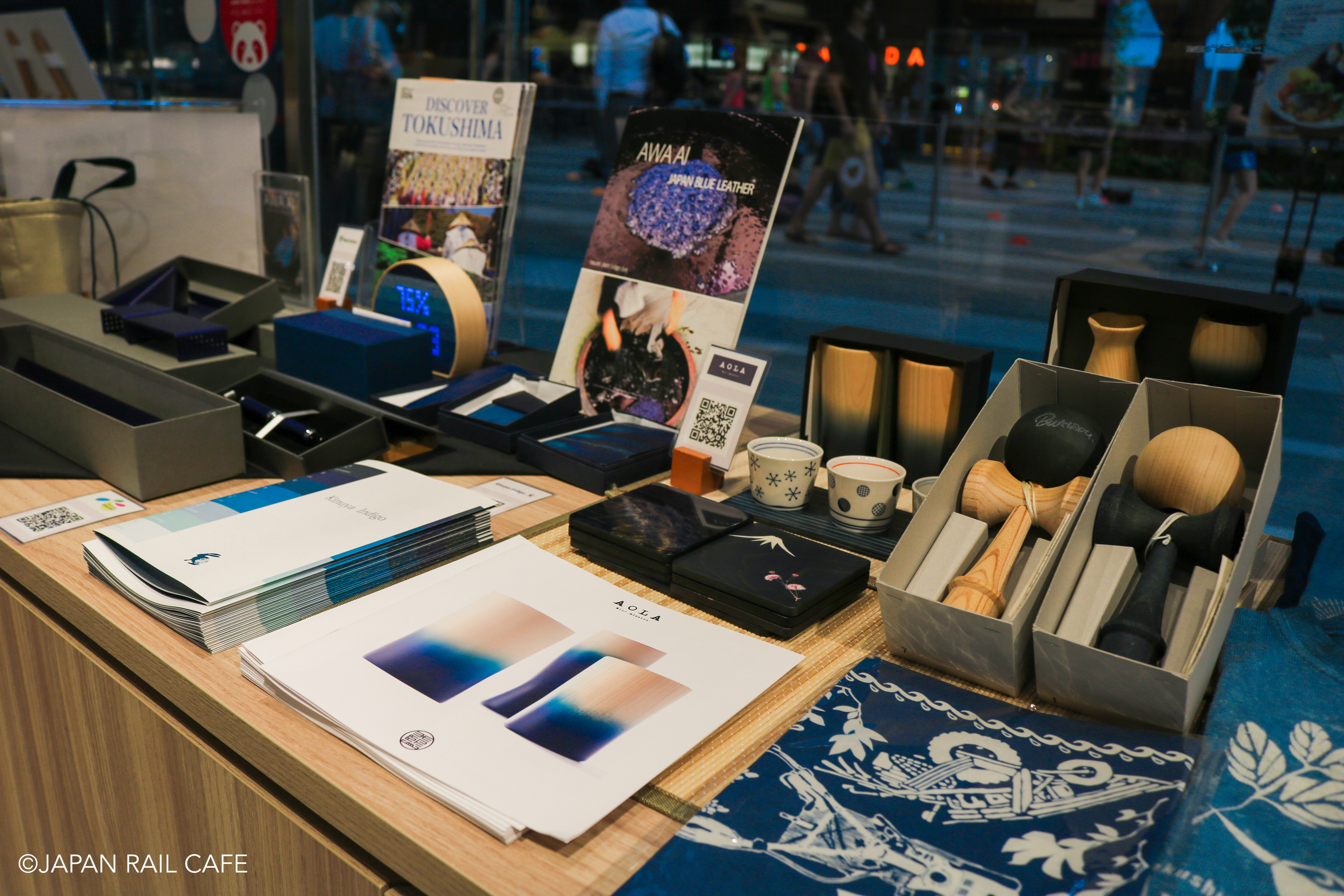 A display of indigo-dyed products featured at JAPAN RAIL CAFE in March 2021. (Image credit: JAPAN RAIL CAFE)