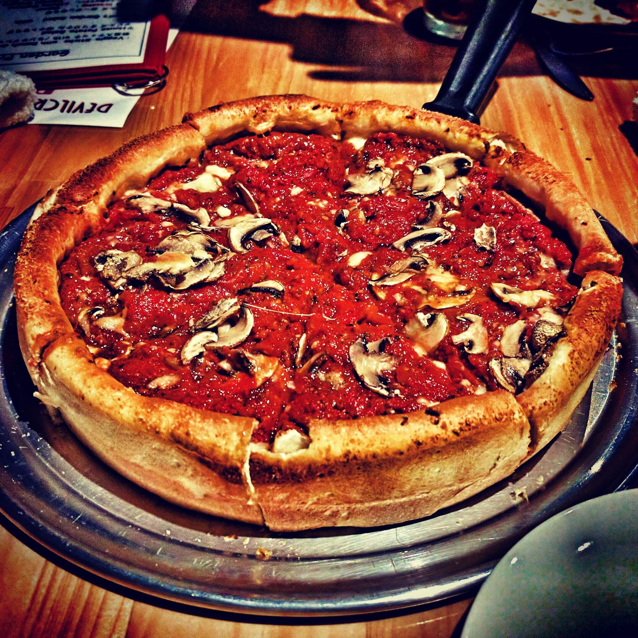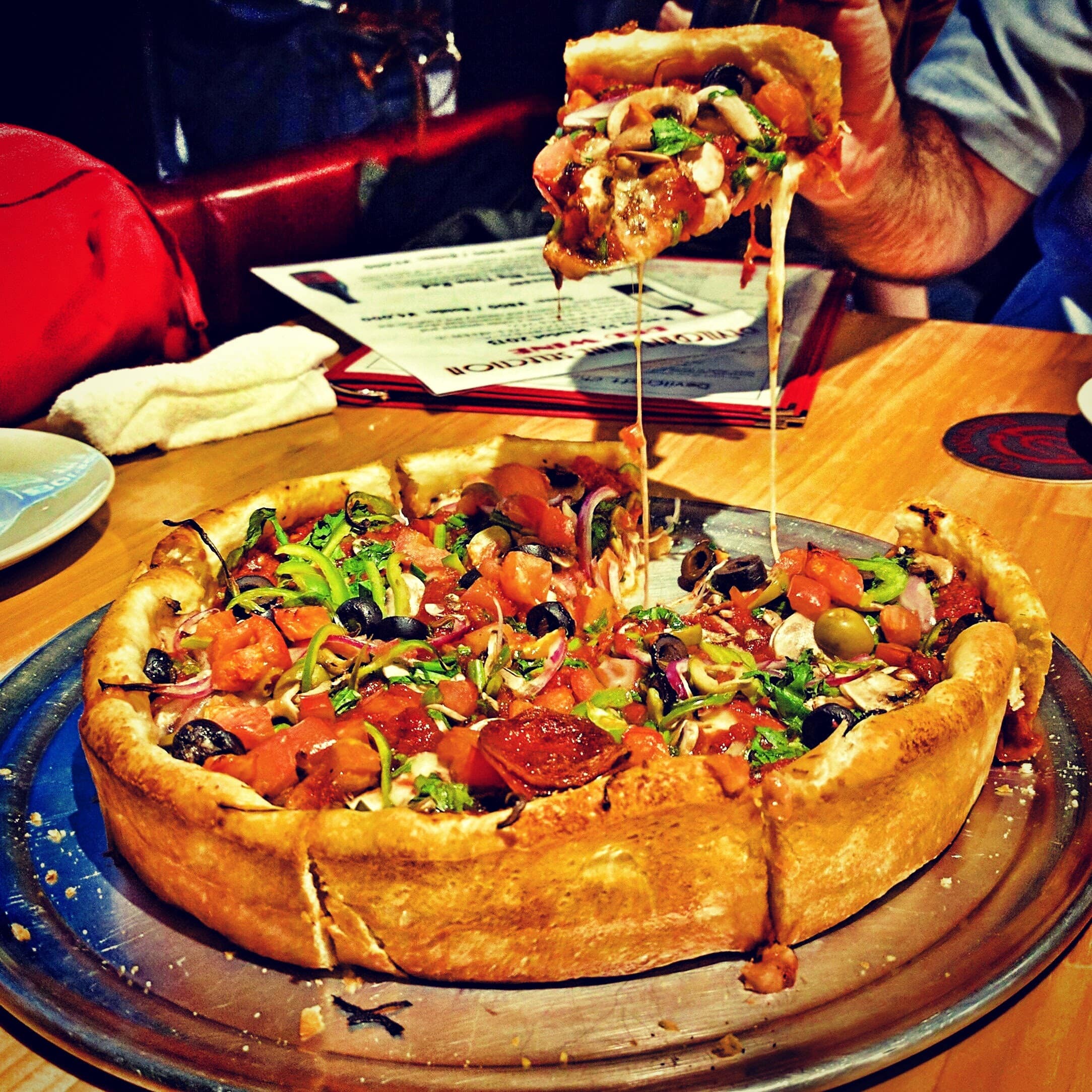 The deep-dish pizza is an iconic dish synonymous with Chicago, where the classic Italian pizza is given an extreme makeover. Unlike the traditional flat type of pizza, the Chicago style has a thick and deep crust, so the pizza has much more fillings such as cheese and tomato sauce.