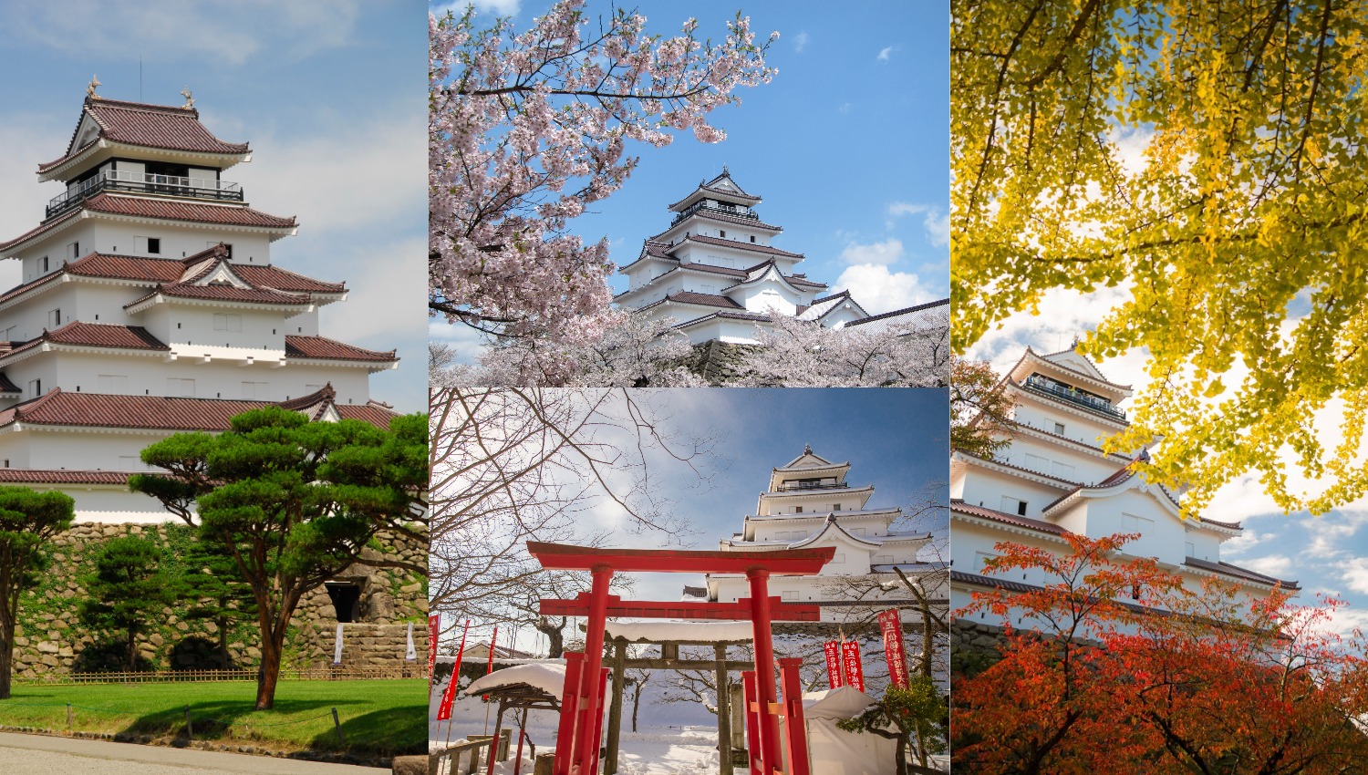 Tsuruga Castle in the different seasons. (Image credit: urushikaoru)