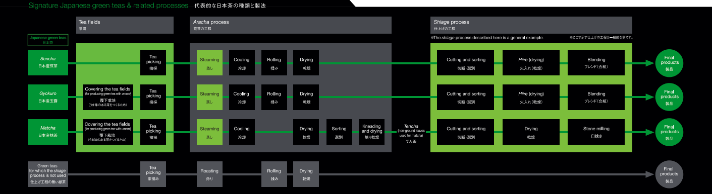 Here’s a helpful chart on the production process of three of the most common teas. (Image credit: Ministry of Agriculture, Forestry and Fisheries)