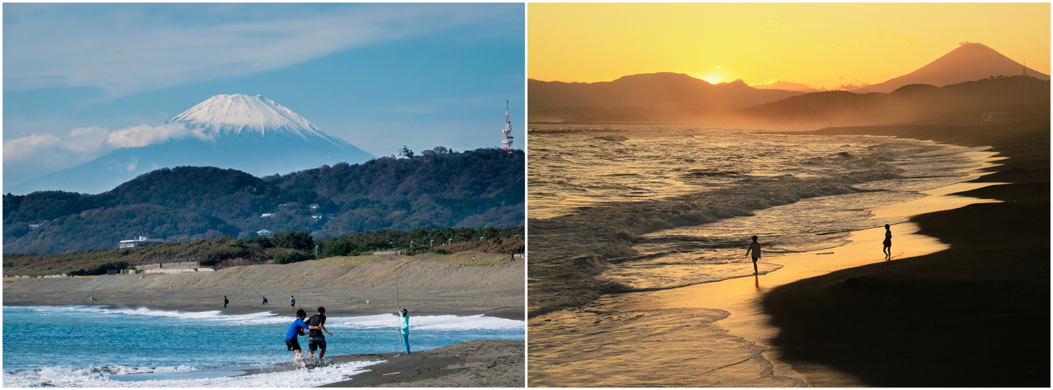 On the Hiratsuka Coast, there is the Sunset reflection on Hiratsuka Sand Dunes (平塚砂丘の夕映 Hiratsuka sakyū no yūbae) which is one of the eight top views of Hiratsuka. You can see Mount Fuji in the background of the television tower of Shonandaira (湘南平), another iconic symbol of Hiratsuka. It makes for the perfect photo spot where you can capture both the sea and Mount Fuji in one photo.