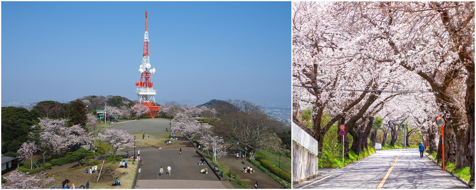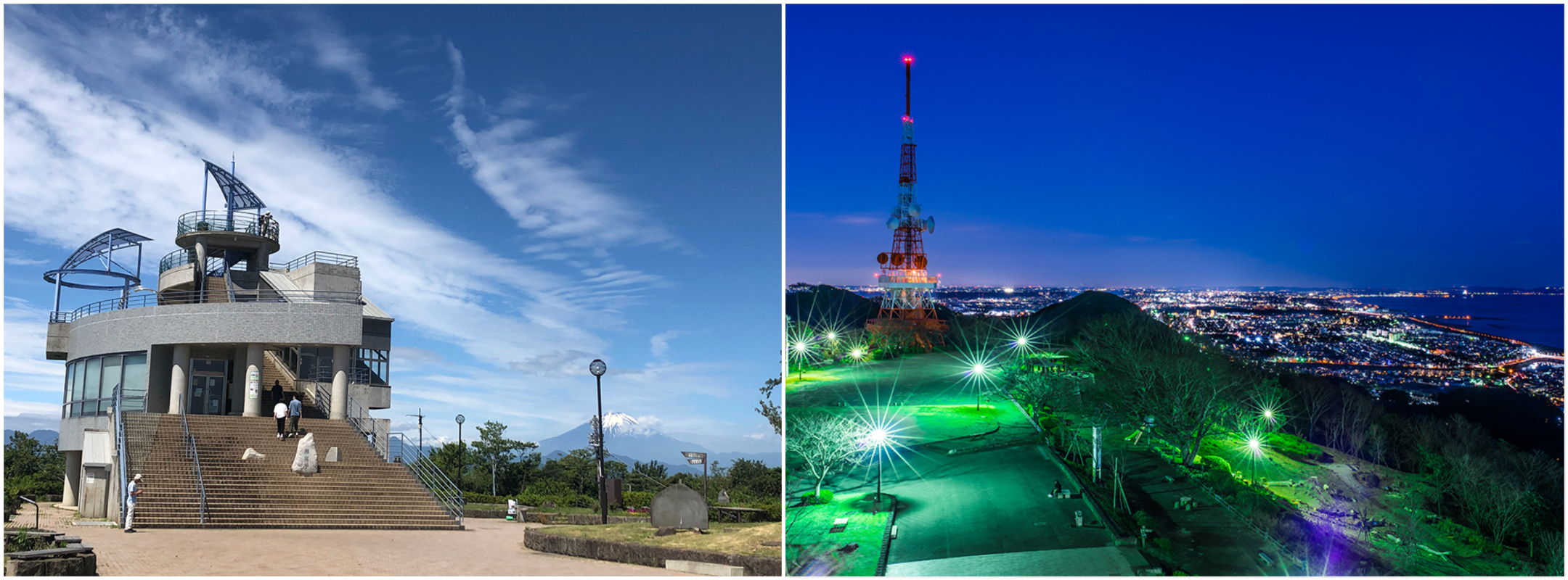 Komayama Park (高麗山公園 Kōmayamakōen) is located on Shonandaira, a plateau 180m above sea level. It is one of the most popular spots in Hiratsuka City, offering a superb 360º panoramic view of Mount Fuji, Sagami Bay, and nearby mountains, with two large observation decks—one on the TV Tower and the other in the Koraizan Park Rest House. It has received many awards such as one of the best 100 night views in Japan.