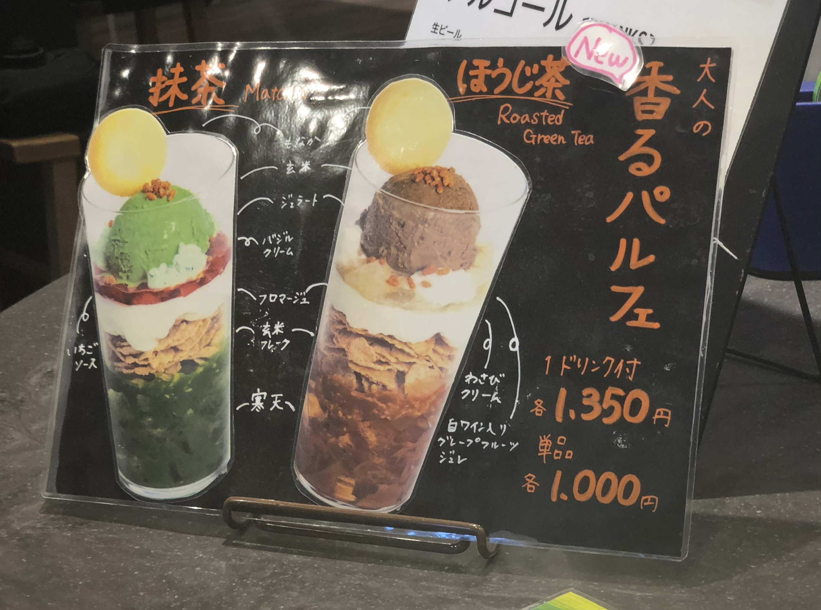 You might also want to check out their Otona no Kaoru Parfait (大人の香るパルフェ), which comes in matcha or hojicha flavours for ¥1,350, including a drink. Desserts described as otona (大人 adult) are usually less sweet and more refined in taste. The parfait comes with a scoop of gelato, fromage, genmai, genmai flakes, kanten (寒天 agar agar), and topped with a monaka (最中 sweet cracker).