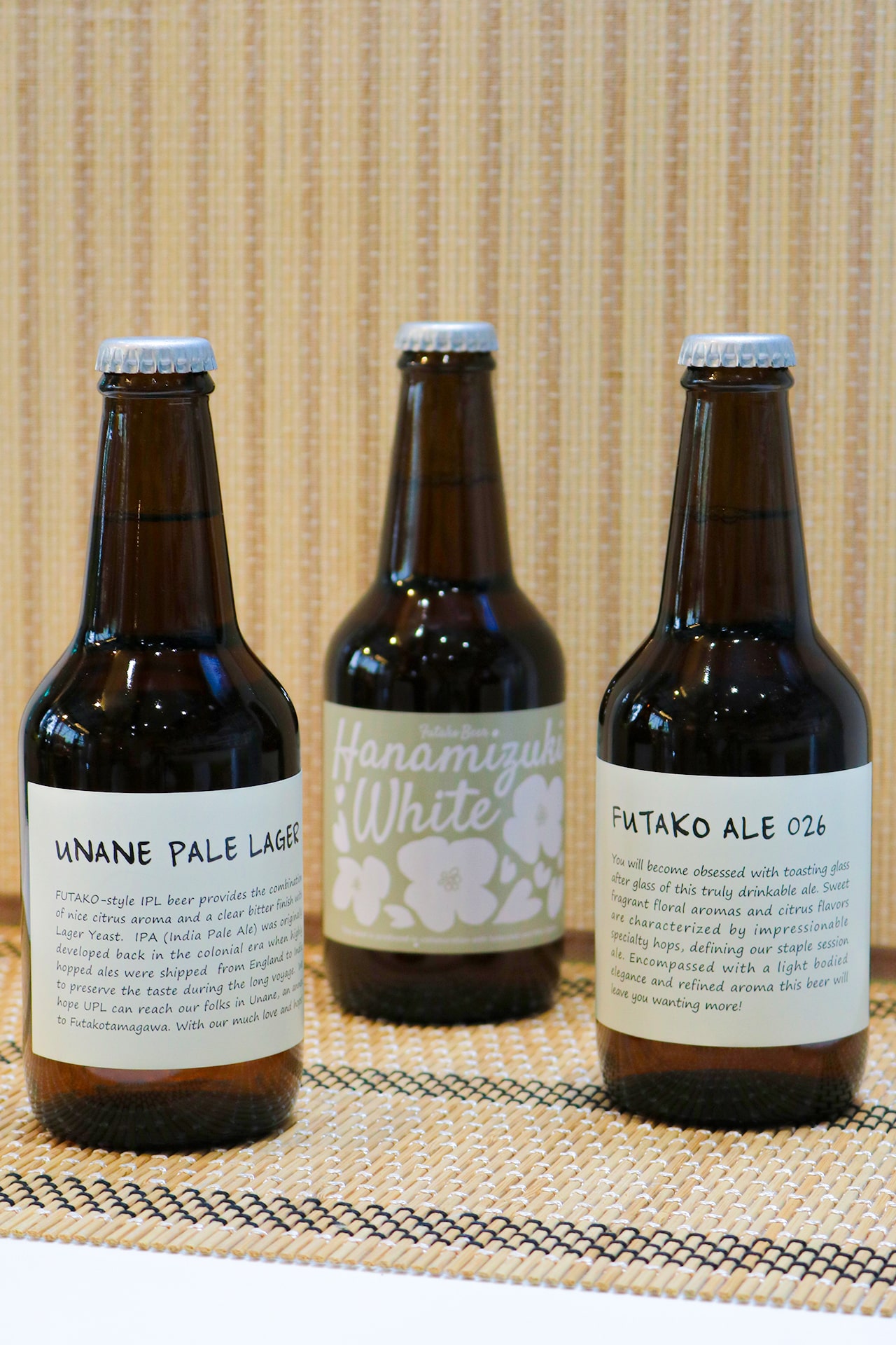 From left to right: Unane Pale Lager, Hanamizuki White, and Futako Ale 026. (Image credit: JAPAN RAIL CAFE)