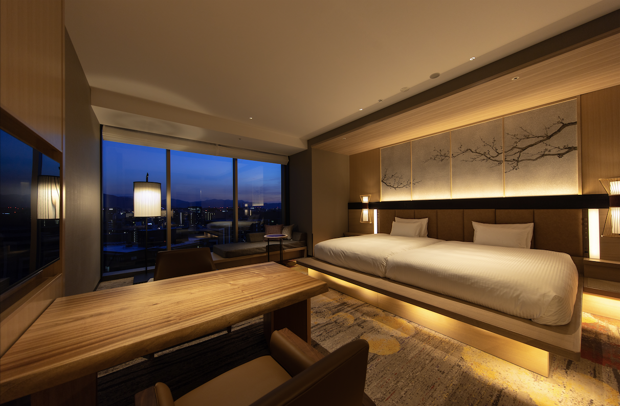 The popular Superior Twin Towerview rooms in Hotel Granvia Kyoto offer stunning night views of the iconic Kyoto Tower. (Image credit: JR West Hotels)