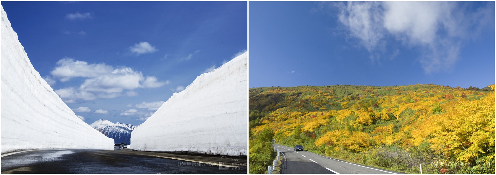 The Hachimantai Aspite Line is known as one of Japan’s most scenic roads. You can enjoy the panoramic view of colorful beeches and maples at every curve in autumn, and in late April, the road is reopened with impressively high walls of snow which can reach a height of 6m in some parts. Experience the beauty of both winter and spring on the Hachimantai Aspite Line, by driving through the corridor of snow which will then lead to cherry blossoms in bloom at the base of Hachimantai.