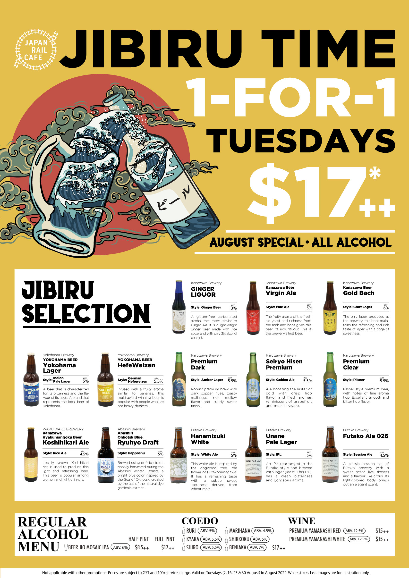 Craving for a pint? Life is more “beerable” with a bottle of beer at hand—you can now enjoy Kanazawa Brewery’s Virgin Ale, Gold Bach, and Ginger Liquor served at JAPAN RAIL CAFE in Singapore! Mix and match your favourite alcoholic beverages for this great 1-for-1 deal on all alcoholic beverages at the cafe, valid on every Tuesday (except 9 August) for the month of August 2022. While stocks last.