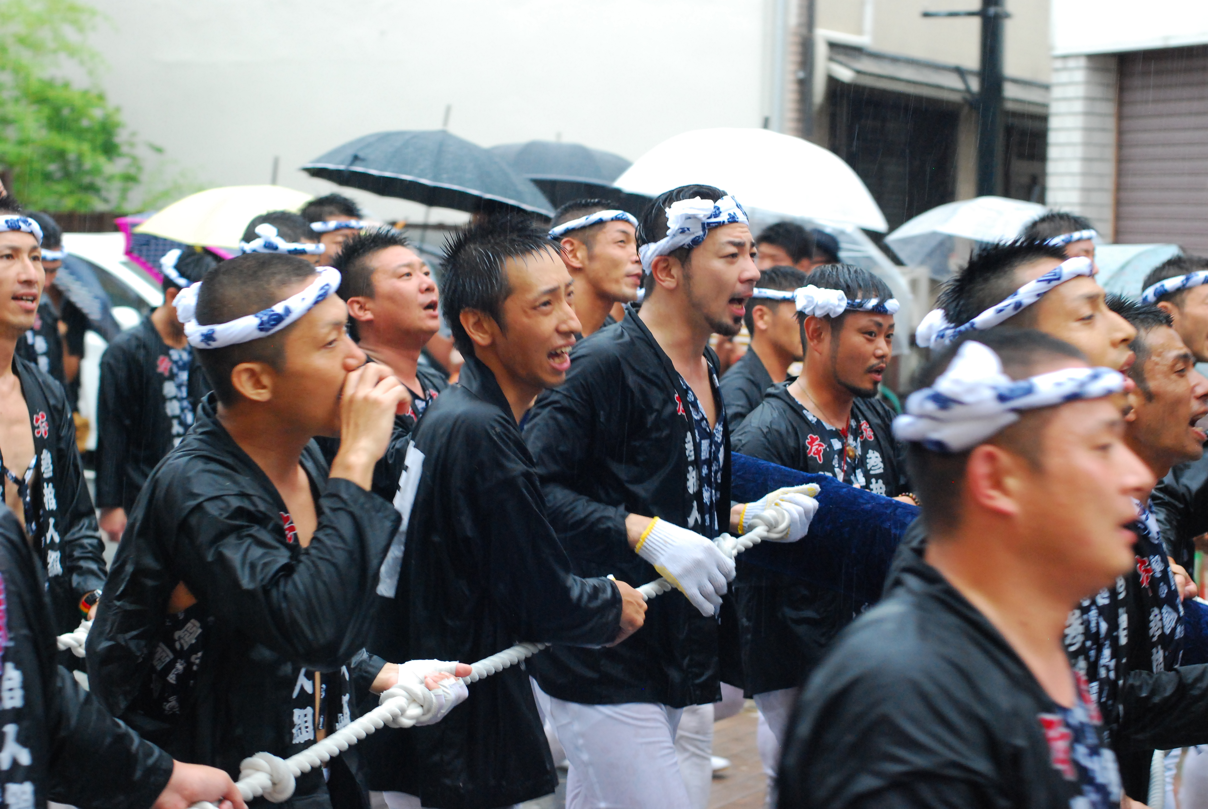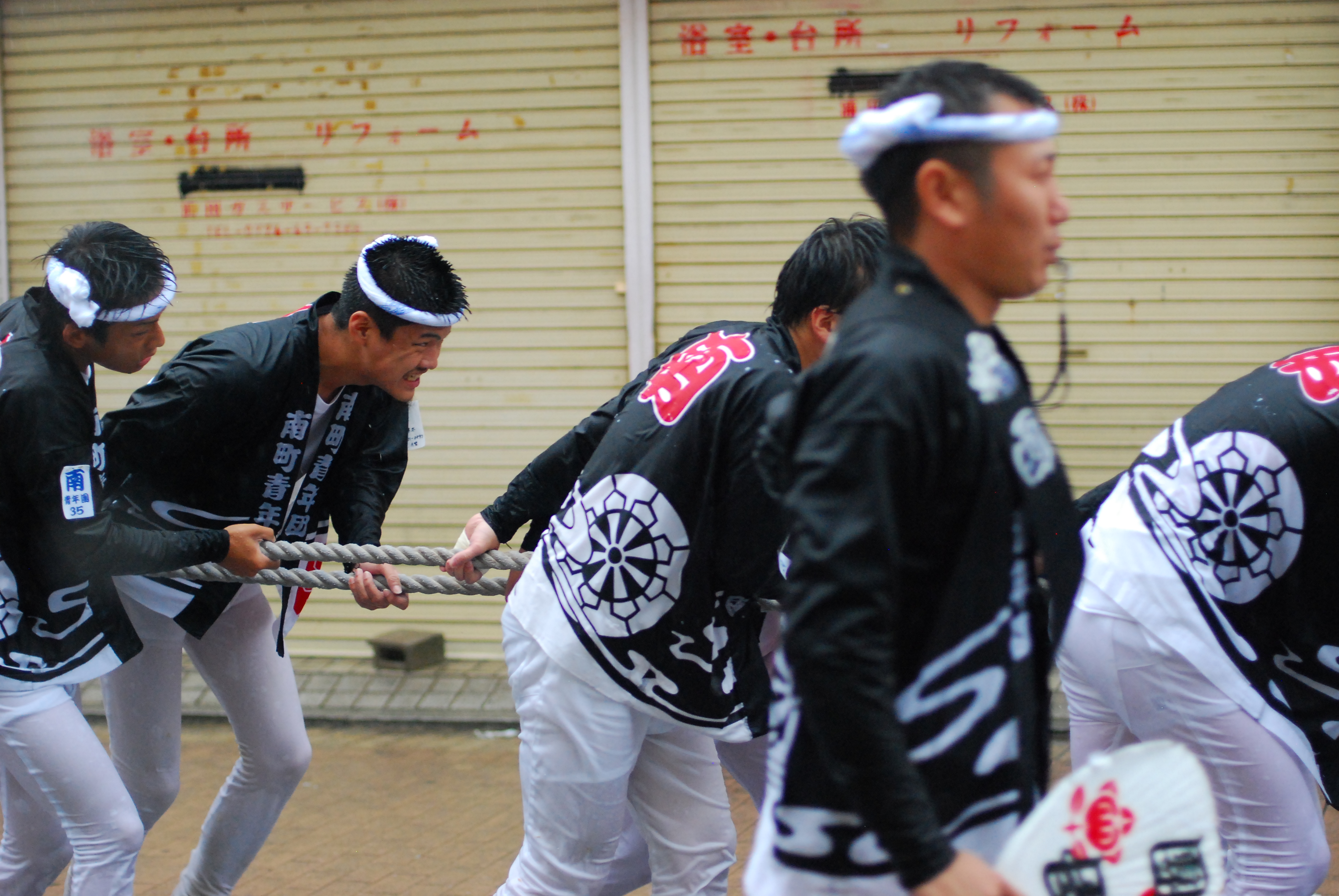 Walking down the steps of Kishiwada Station (岸和田駅 Kishiwada-eki) towards the main ticket gates, you can already feel a buzz in the air as you step out into the undulating and raucous crowds of the Kishiwada Danjiri Festival (岸和田だんじり祭り Kishiwada-danjiri-matsuri). Japanese festivals, in general, are known for their animated atmosphere and throngs of jubilant festival-goers, but there’s a different kind of excitement, something almost dangerous, that accompanies this event. The electricity in the streets is reminiscent of the running of the bulls in Pamplona, Spain; a primal energy draws you forward, tempered by excited caution and nervous anticipation. And rightfully so. No other festival in Japan boasts a record of accidents, injuries, and deaths on the level of Kishiwada’s Danjiri Festival. Yet while the looming threat of some cataclysmic crash is surely part of this festival’s pull, Kishiwada’s other attraction, hidden behind the flare of careening wooden floats, is a story of age-old communal bonds uniting working-class communities.