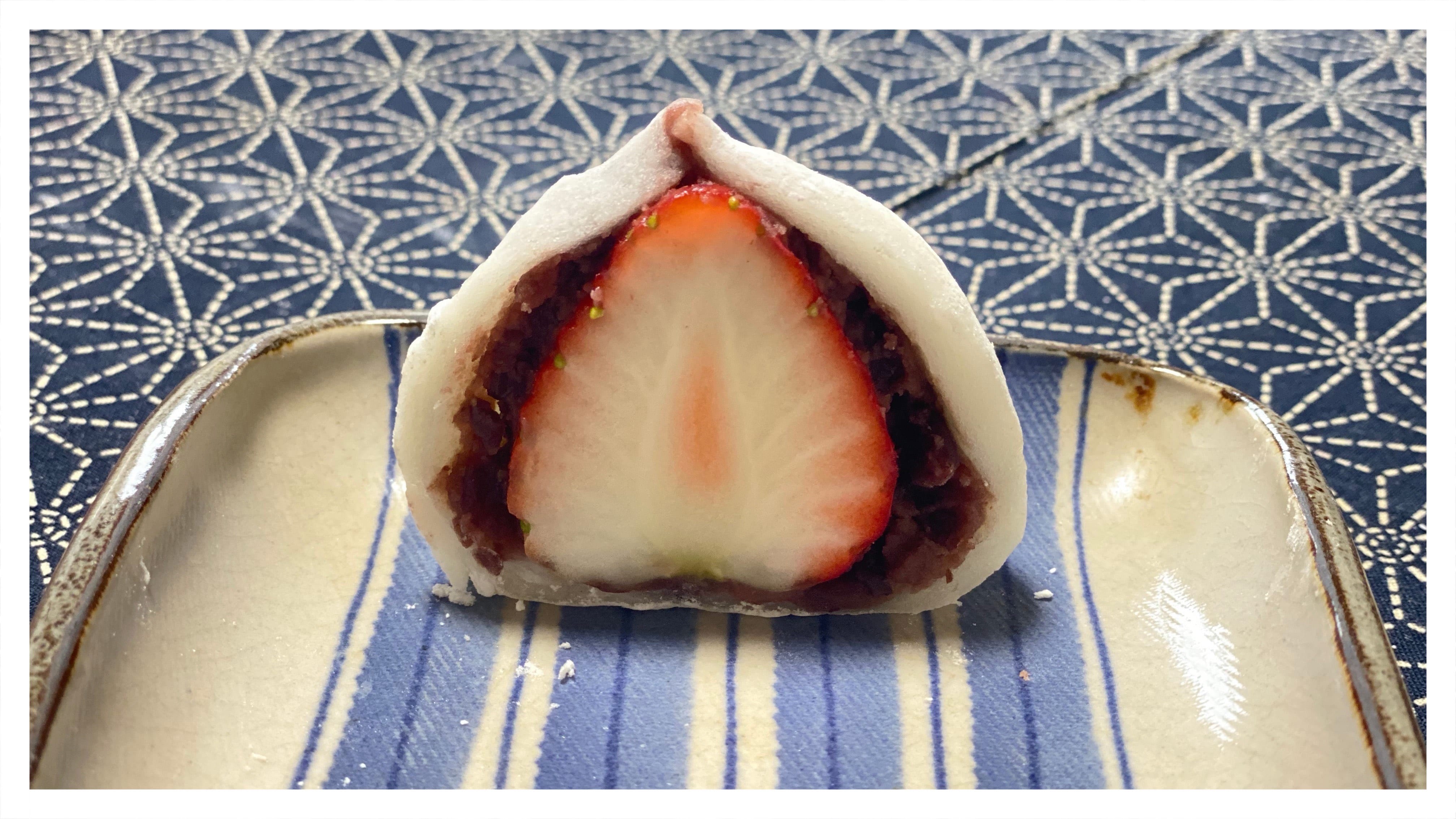 My favourite mochi is the simple daifuku (大福), or a little bit of red bean paste tucked into a thin layer of soft mochi. Delicious, with some green tea or matcha. Other mochi sweets also involve other ingredients and depending on the season, they will be made with the following: Yomogi (蓬 mugwort leaves), pumpkin, corn, chestnut, sweet potato, pickled sakura cherry tree leaves and, last but not least, strawberry. These mochi cakes are such classics that even convenience stores have their own versions of them.