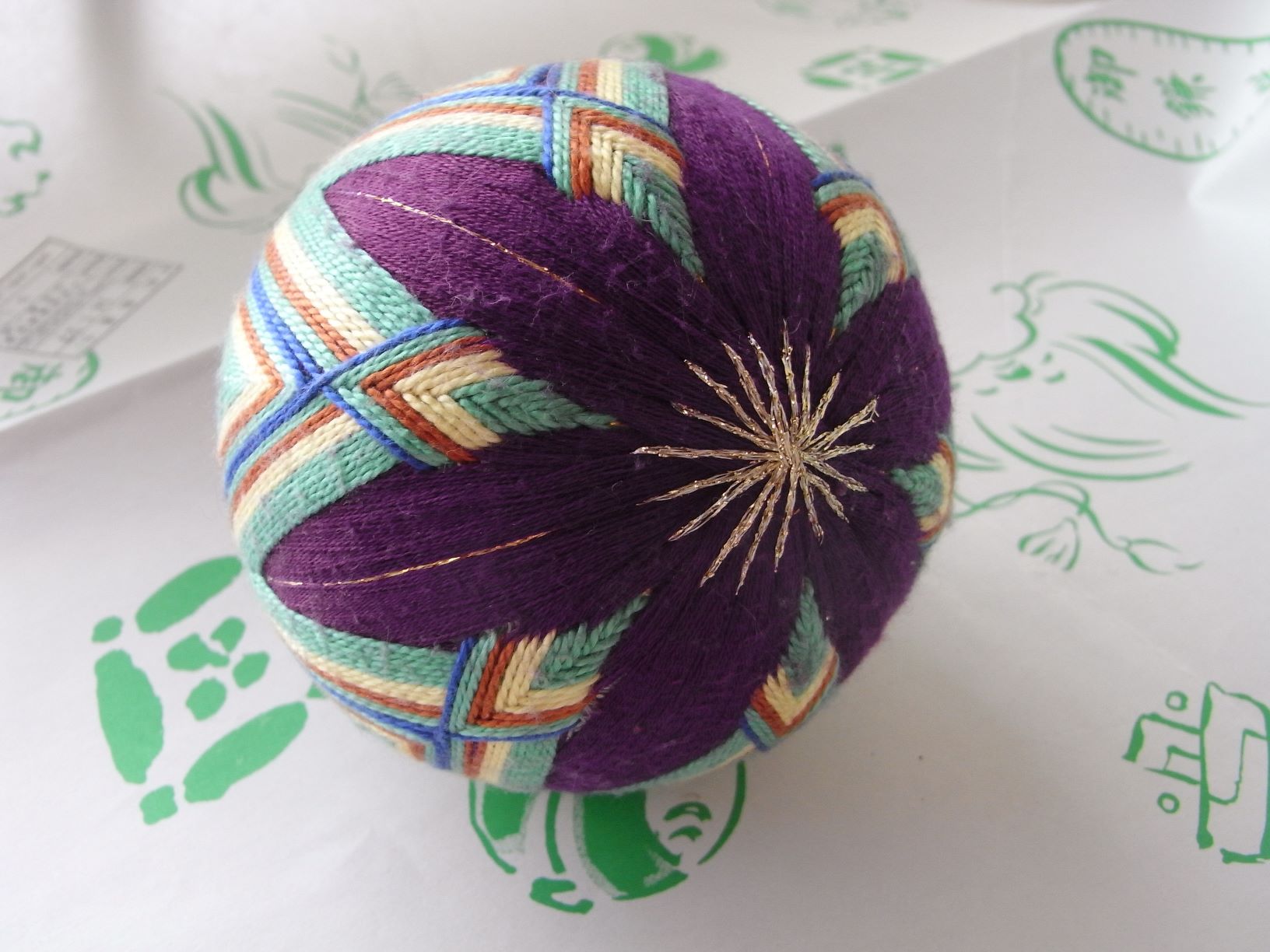 A close-up image of a temari ball crafted by Kōno Sayako featuring bright colors and a carefully-crafted design. (Image credit: Kōno Sayako)