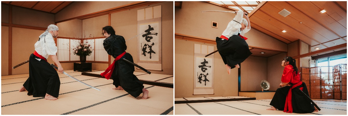 Next up, we had our first lesson in kengido (剱伎道), to learn the way of the samurai, and to learn basic movie sword fighting to star in our own martial art movie. Kengido is an original method developed by KAMUI to teach the beautiful form of basic sword-fighting that focuses on communication and having fun as well.