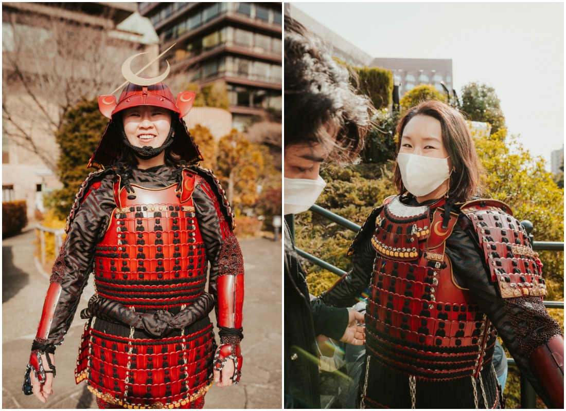 Left: It took 2 staff to dress me up in the KAMUI original armour. Right: Looking fierce after putting on the armour. (Image credit: TokudAw Inc.)