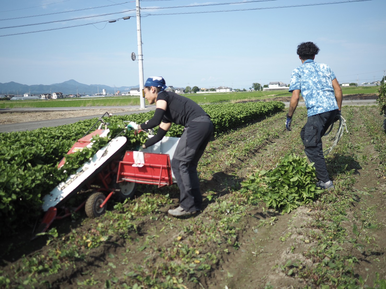 Harvesting the indigo plant is done with this machine that cuts the crops about 10cm above ground and then picks them up with an automated belt. We’ll then collect them in bundles on the other end. (Image credit: Felix Nai)