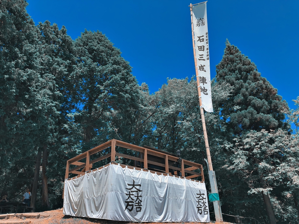 The campground of Ishida Mitsunari (石田三成陣跡) is located on top of Mount Sasao (笹尾山 Sasao-yama), slightly north of the Kessenchi.