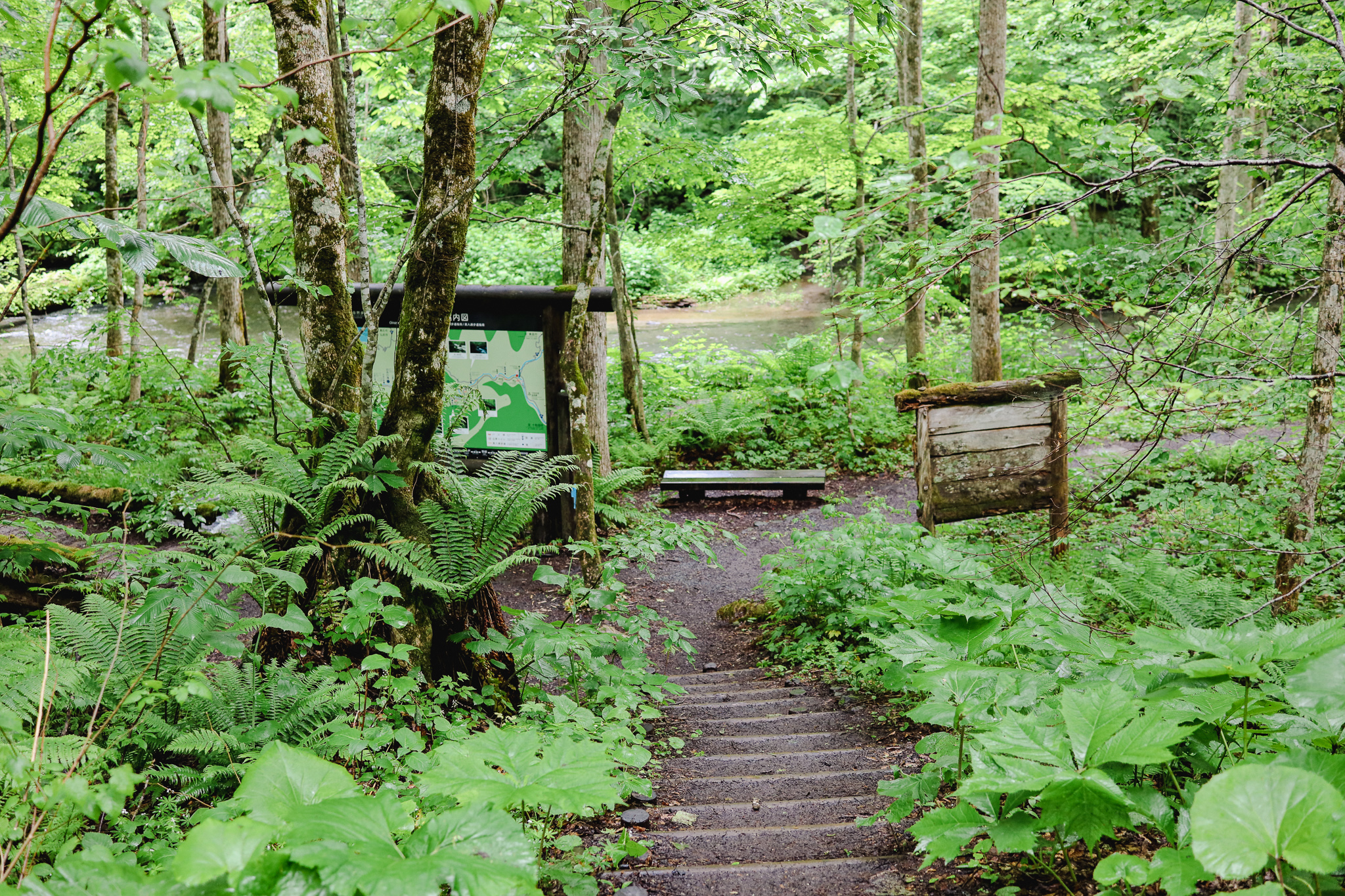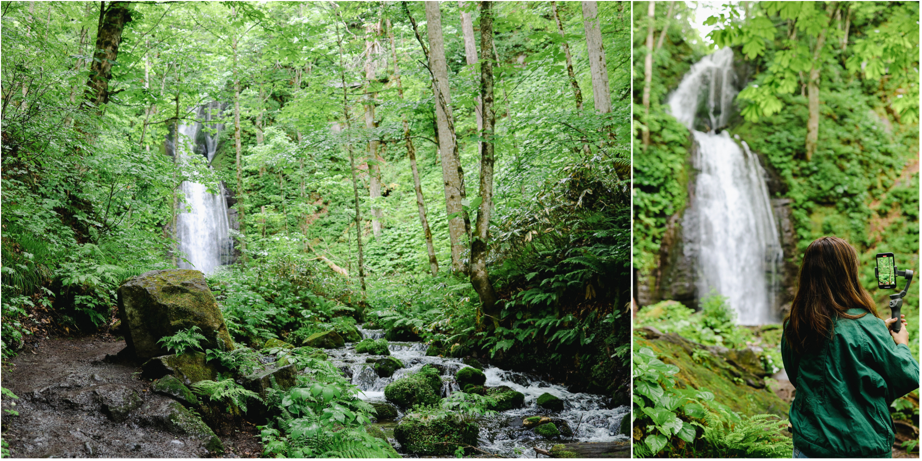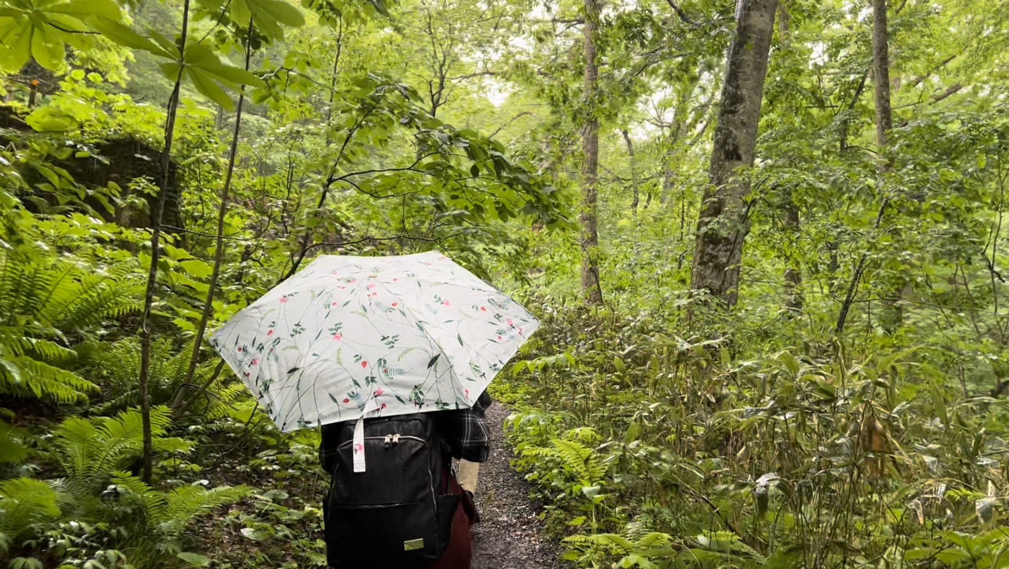 But with shinryoku, comes tsuyu (梅雨)—Japan’s rainy season. Although it wasn’t quite tsuyu season yet in Northern Tohoku, it did rain the whole week of our visit—the ground was still wet from yesterday’s rain and it started drizzling. I looked at my new, white sneakers (amateur mistake, I know) and started to panic a little. But I tried not to let the rain dampen my mood! Fortunately, the trail was still pretty walkable thanks to well-made pavements with generally little to no incline. Also, Oirase Keiryu is said to “come alive” when it’s rainy, as you can see mist fogging up at certain parts of the valley especially in the early morning, elevating the hike to a more mystical plane.