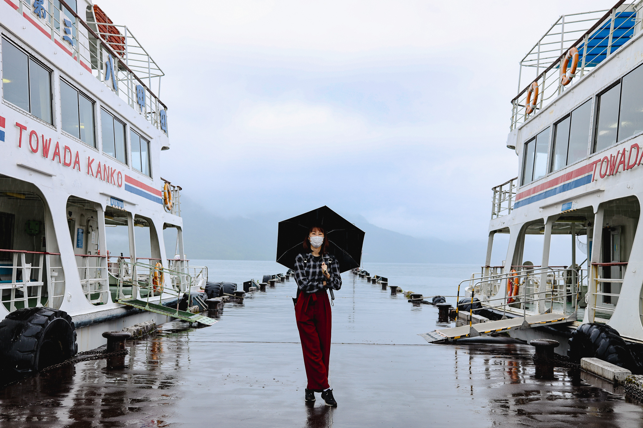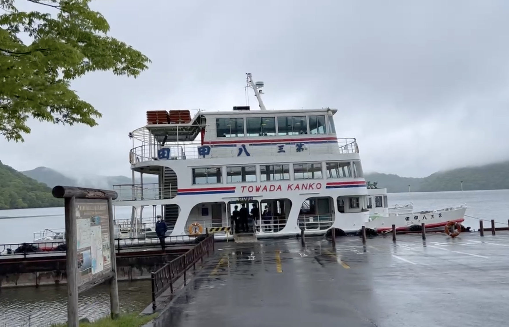 Boarding the Lake Towada Pleasure Boat, with gloomy skies behind. (Image credit: JR East / Sue Lynn)