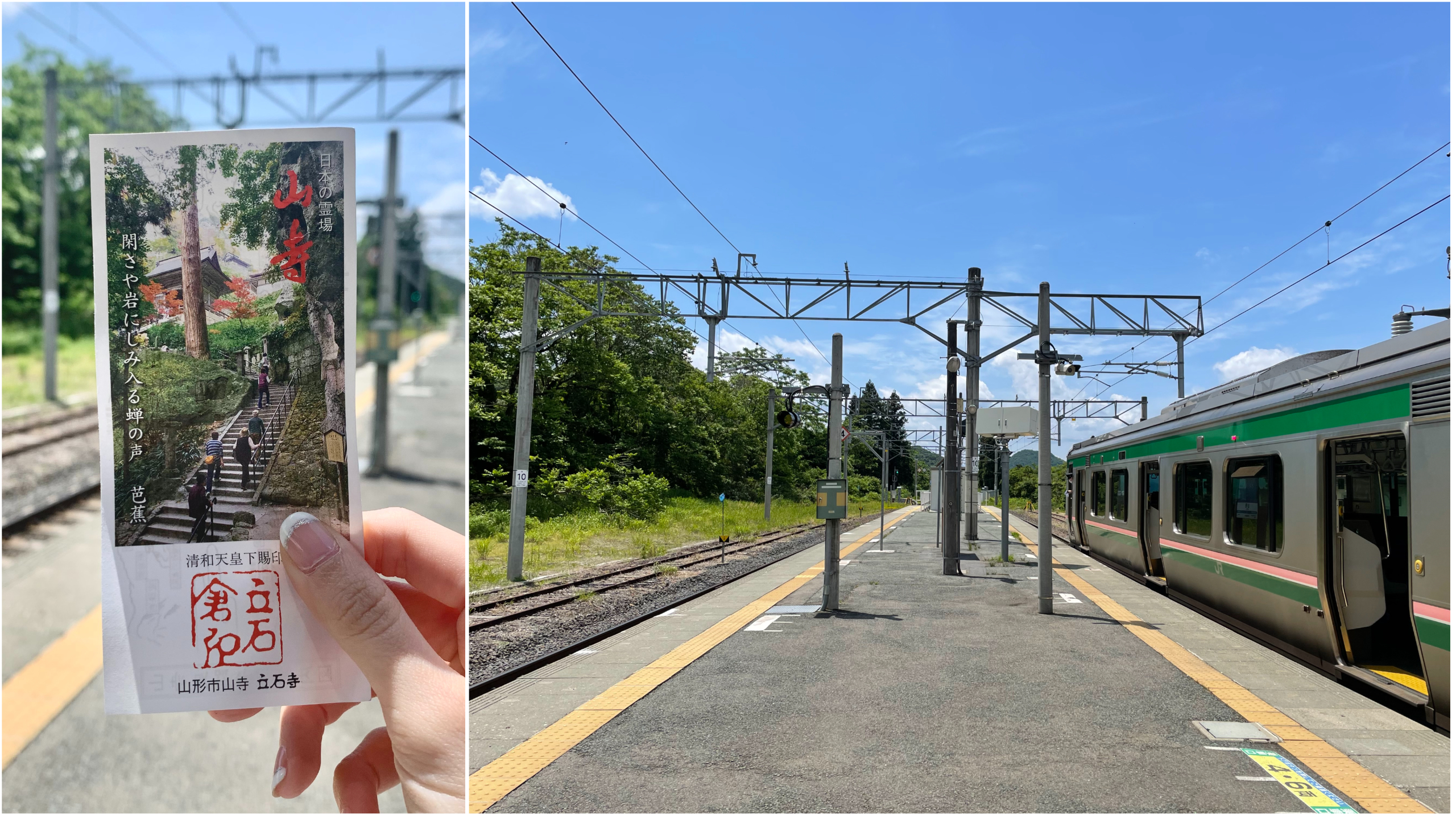 Early last month, I had the opportunity to visit Yamagata Prefecture (山形県 Yamagata-ken) to experience shinryoku season. As someone living in a tropical country, greenery is something I am very much used to, however, the fresh green leaves were in shades of green so vibrant, it was nothing like I had seen before! For my day trip in Yamagata, my first stop was to Yamadera Station (山寺駅 Yamadera-eki).