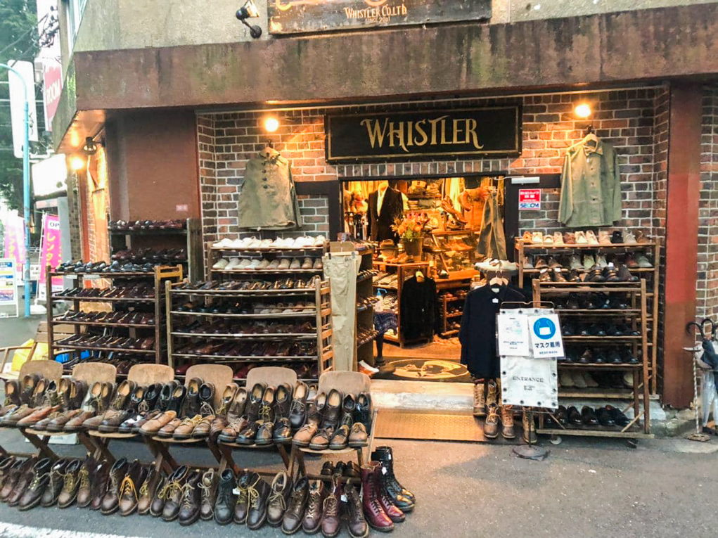 Probably one of the more eye-catching furugiya around Koenji, Whistler offers vintage and used clothing imported from the USA from the 1940s to 1960s for men. As you can probably tell in the image above, they specialise in footwear like leather shoes and boots, as well as military wear and jackets, while also being well-stocked with flannels, vests, and Hawaiian shirts. Their sister shop, chart, is just right around the corner in the same building.
