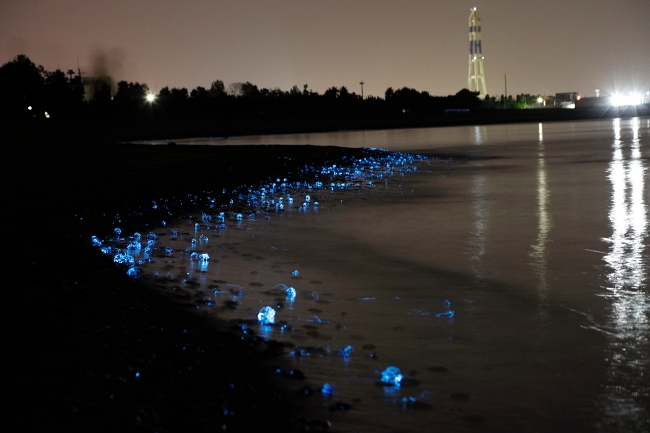 Glowing hotaruika washed up on the shore. (Image credit: Toyama Tourism Organization)