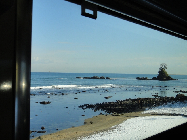 The Amaharashi Coast in winter, as seen from a train on the JR Himi Line. (Image credit: Kevin Koh)