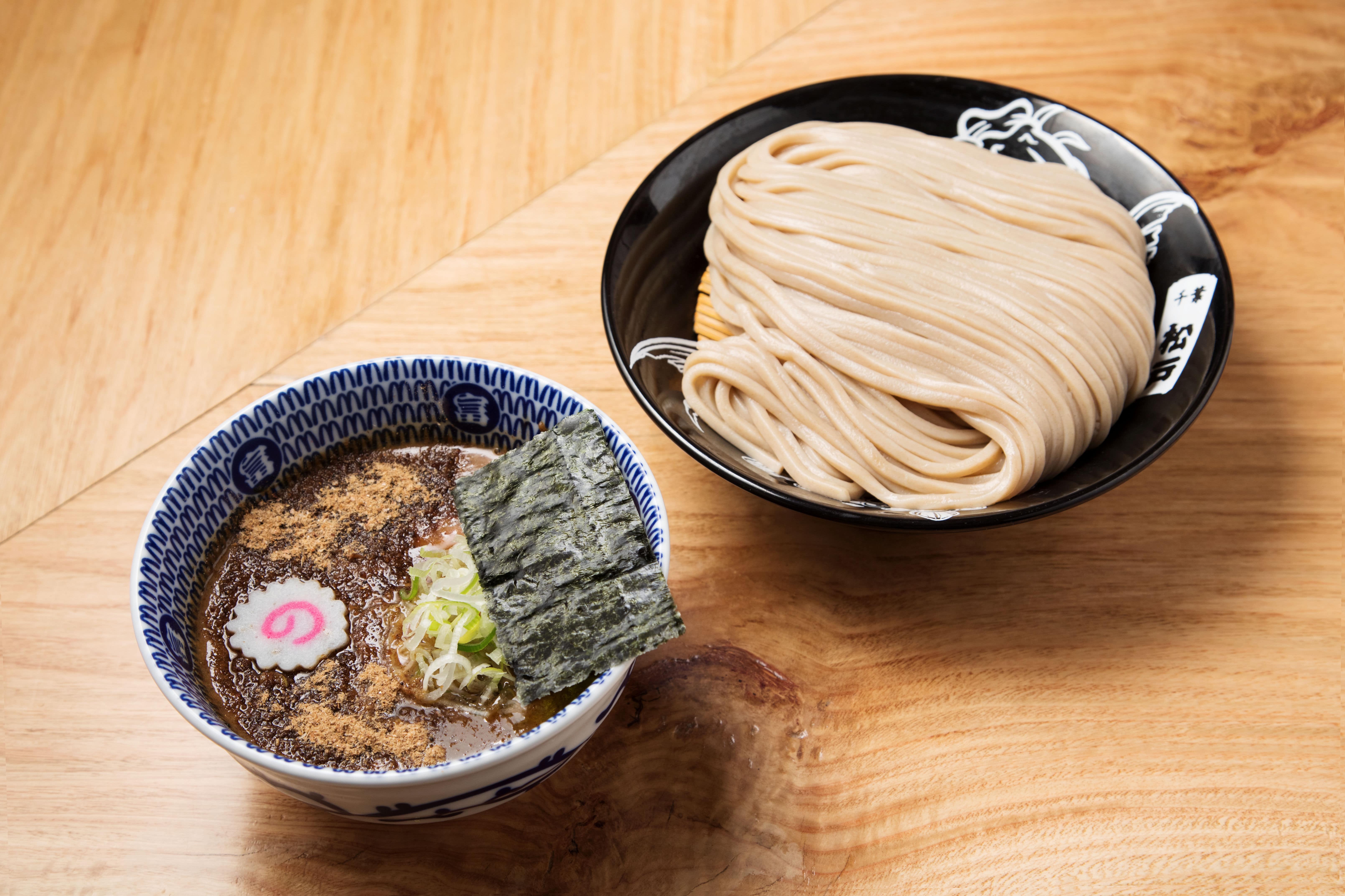 Their signature dish is a tsukemen (つけ麺 ramen with dipping broth) that has characteristically thick homemade noodles and a rich dipping sauce. Their main shop, Chuka Soba Tomita, was voted “Japan’s No.1 Ramen” for three years. (Image credit: Matsudo Tomitamenban)