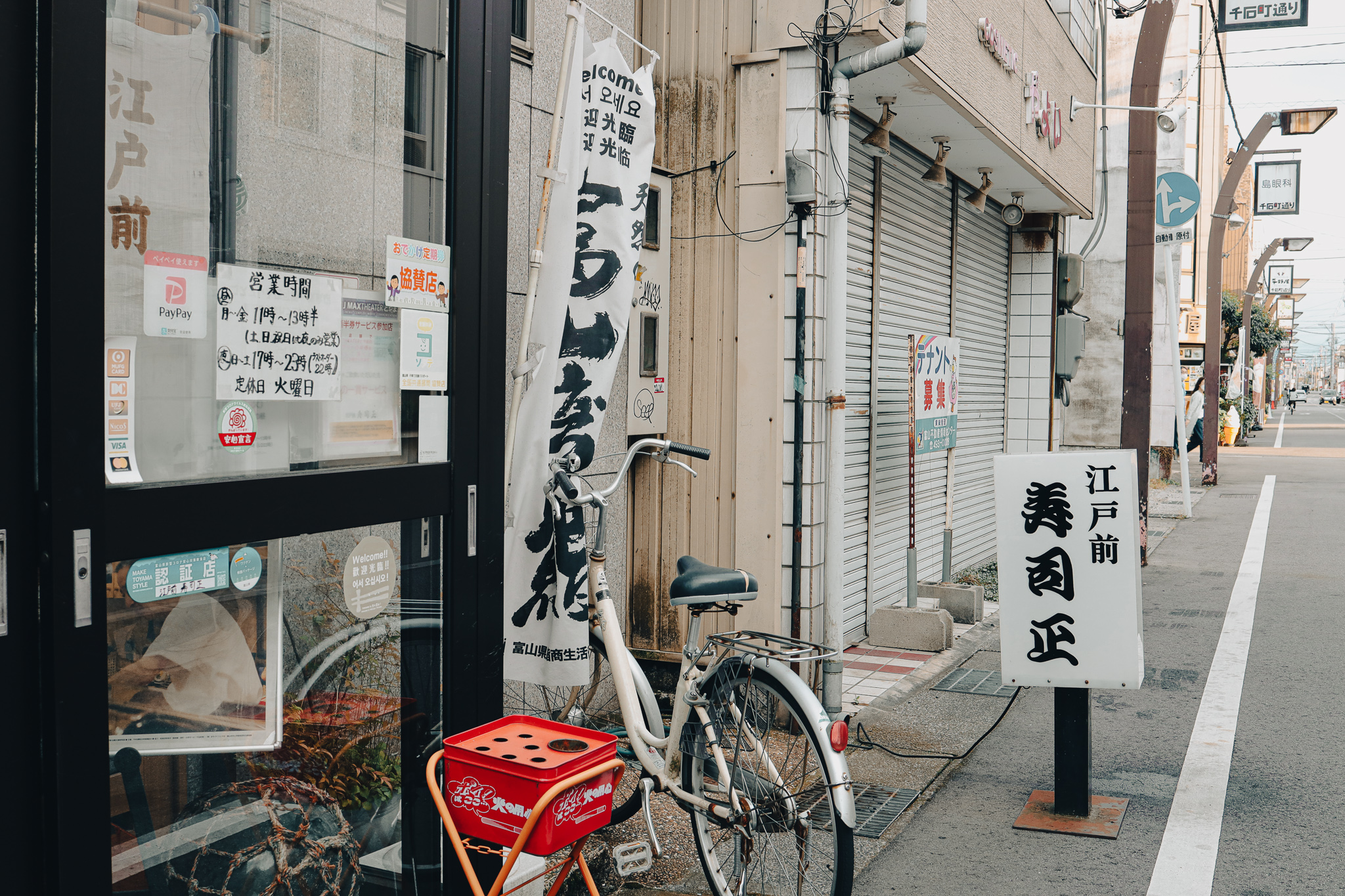 A trip to Toyama is incomplete without eating Toyama Bay Sushi (富山湾鮨 Toyamawanzushi). Our friend Momoko san from the Toyama Prefectural Government helped to shortlist a few of the many sushi restaurants in Toyama that served this local specialty. We settled with Sushi Masa (寿司正), a well-known sushi bar located within Sengoku-Machi Dori Street (千石町通り) in Toyama’s city centre. When we first arrived, we legitimately thought that we got the wrong address as the street was simply too quiet! But lo and behold, the sushi that awaited us were just a few steps away inside this unassuming building.