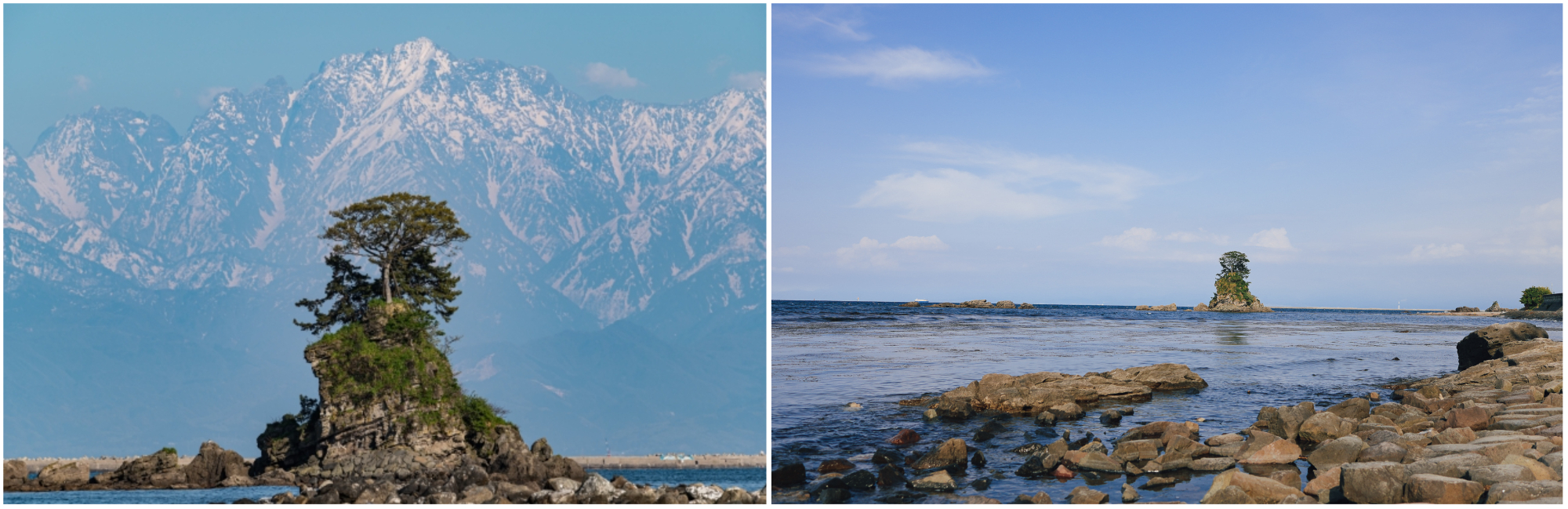 Amaharashi Coast is located between Takaoka City and Himi City (氷見市 Himi-shi) and makes for the perfect resting stop for those travelling along the Sea of Japan (日本海 Nihonkai). It is most popular for its winning combination of coastal views with the mountain backdrop. The majestic view of the Japanese Alps or Tateyama Mountains Range (立山連峰) looming above Toyama Bay changes with each season. The area stretching Amaharashi Coast has been designated as “One of Japan's Best 100 White-sand and Green-pine Beaches” and “One of Japan's Best 100 Beaches”.