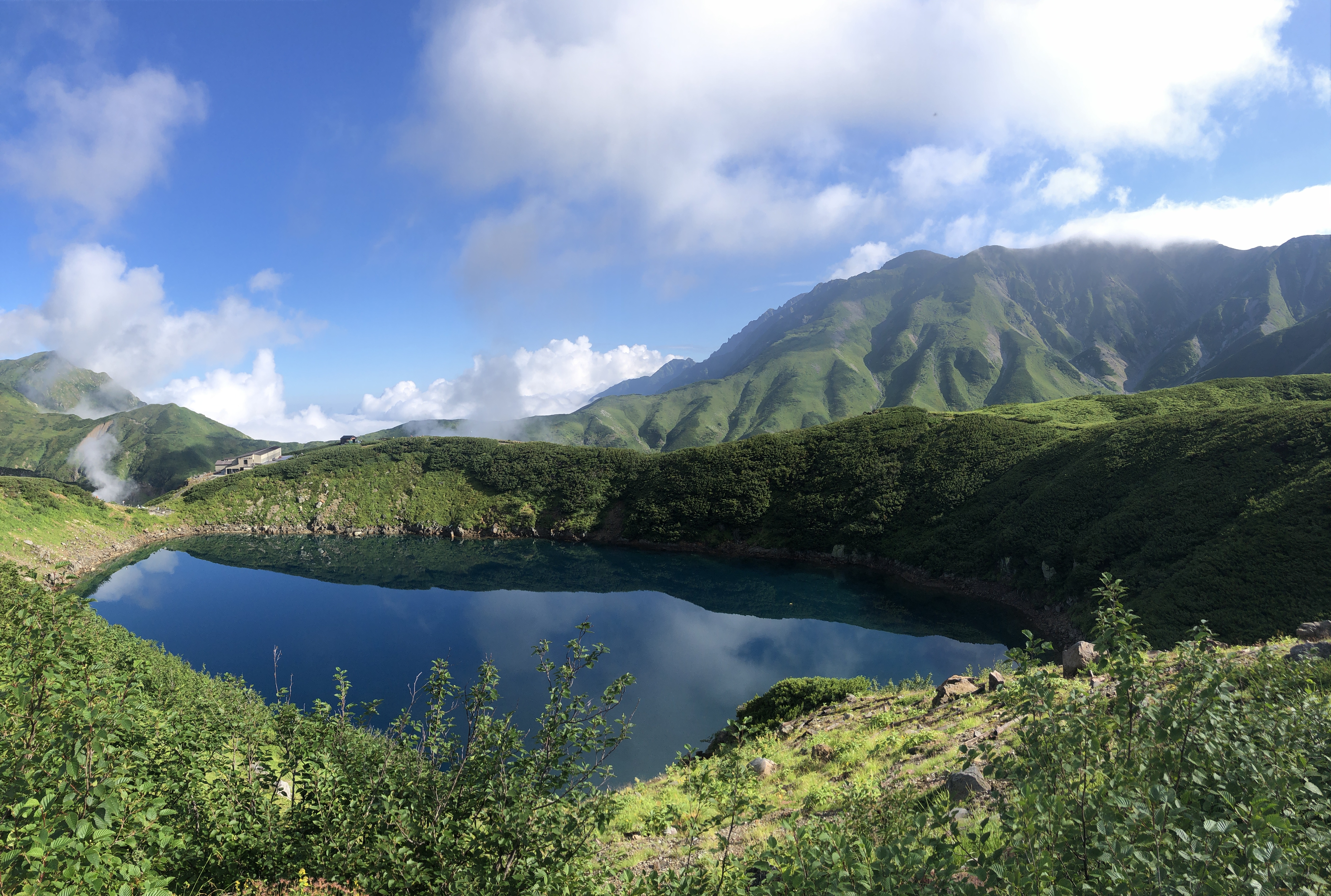 Arguably the highlight of the Tateyama Kurobe Alpine Route, Murodo sits at an altitude of 2,450 metres and is the terminal point for both the Tateyama and Ogizawa sides of this alpine course. From here, if you wish to go any higher, you have only your two legs to take you. Murodo is home to several of the routes most notable highlights, including the volcanic crater lake, Mikurigaike (ミクリガ池), the Jigokudani (地獄谷) “Hell Valley”, the Snow Corridor (雪の大谷 Yuki-no-otani), and a series of trails leading up into the Tateyama Mountain Range. The Snow Corridor, in particular, is a must-see site from mid-April through May with its massive snow walls measuring up to 20m high—thanks to the tremendous snowfall the area receives each winter. Murodo also serves as the starting point for hikers and backpackers looking to access the neighbouring peaks of Mount Tate (立山 Tateyama) and Mount Tsurugi (剱岳 Tsurugi-dake), the latter being one of Japan’s most notorious climbs.