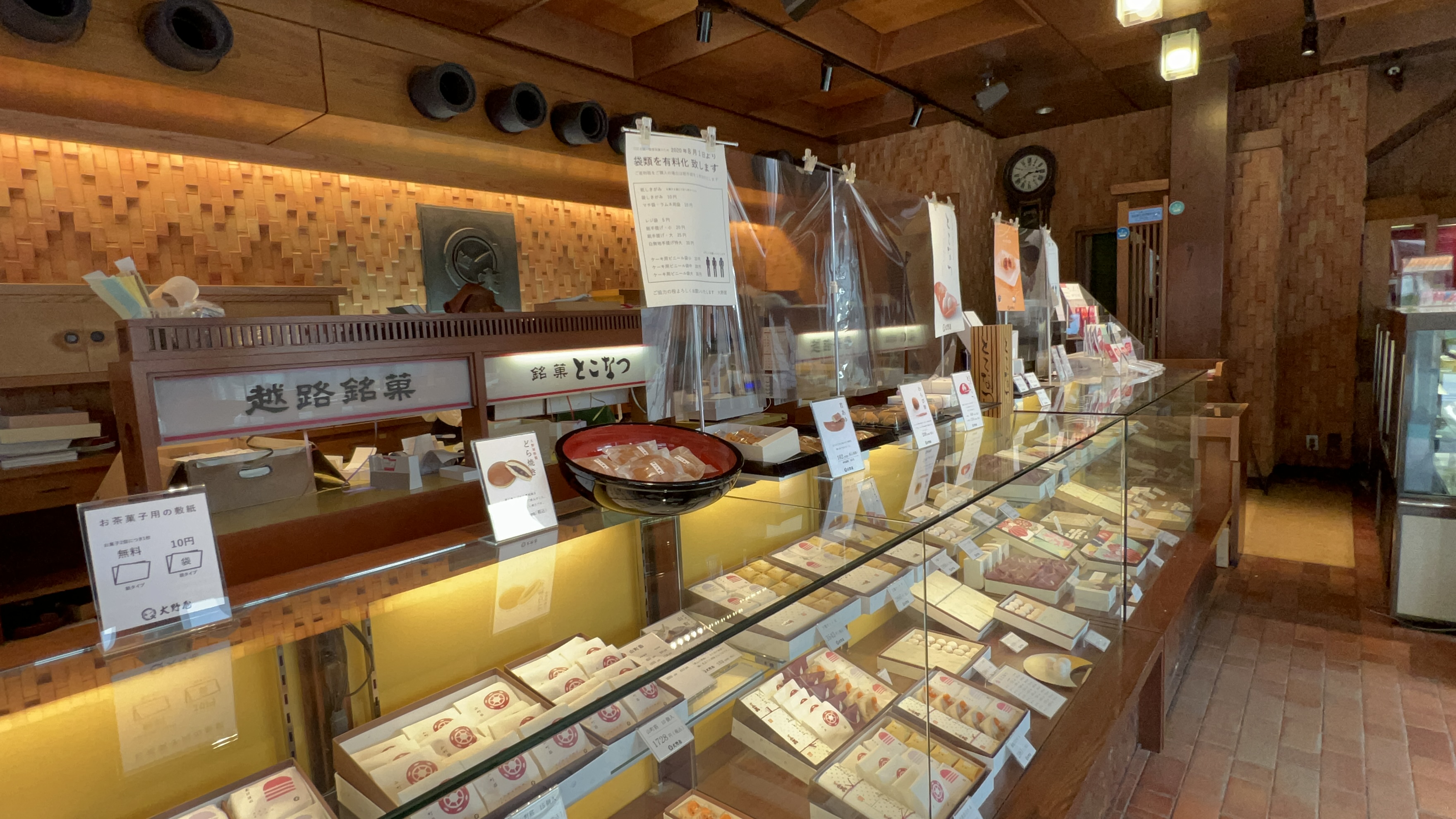 When it comes to local confectionery of Toyama, Ohnoya (大野屋) is one of the region’s most well-known brands specialising in traditional Japanese confectionery, otherwise known as wagashi (和菓子). Ohnoya has been in the business for the past 180 years, and the current owner Ohno-san (大野さん) is the ninth-generation of this family-run business! The shop that we visited is Ohnoya’s main shop in the Yamachosuji (山町筋) area of Takaoka, famous for its stretch of preserved historic warehouses and buildings.
