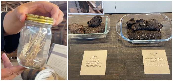 The two-rowed barley and peat, which is made from soil and plant matter. (Image credit: JR East / Julia Yee)
