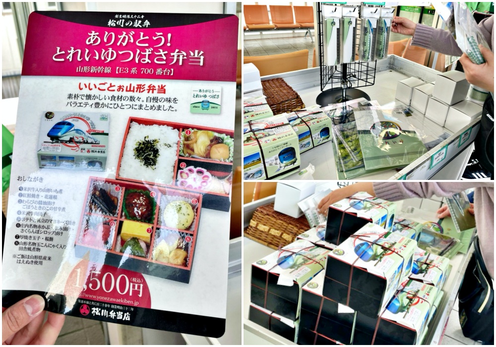 To commemorate their first (and last) ride on the Toreiyu Tsubasa, Jak and Emmie booked the special meal package, which not only came with a two-layer lunch box, but also an assortment of snacks and drinks produced in Yamagata.