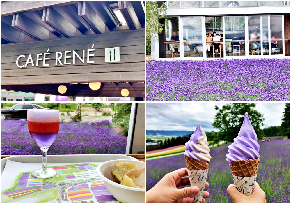 Feeling hungry? You can head over to Café René (カフェ ルネ) to enjoy dining with a view of pretty purple lavender flowers. Mainly serving Western food, the café’s menu also features some lavender-themed items such as lavender jelly and strawberry juice (bottom-left in the picture above), steamed potato with lavender butter, lavender coffee, and lavender tea. Don't the multicoloured layers of the lavender jelly and strawberry juice resemble the Irodori Field?