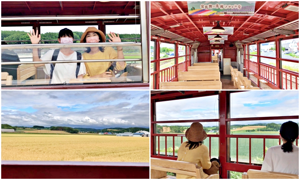 Plying the route between Furano Station and Biei Station (美瑛駅) / Asahikawa Station (旭川駅), the Furano Biei Norokko Train slows down at scenic places of interest, so that you can soak in the beautiful scenery from the train’s large windows. These slowed down sections include:
