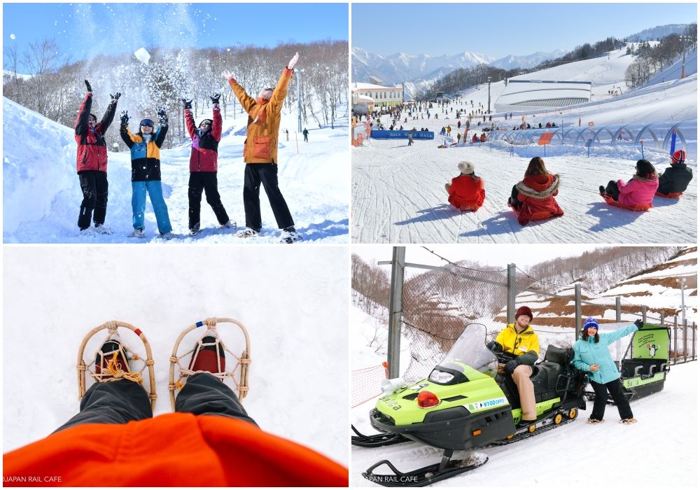 Other than skiing and snowboarding, GALA Yuzawa Snow Resort also offers an assortment of fun snow activities, such as sledding, snowmobile sleigh tours, kanjiki snowshoe walks, and more.