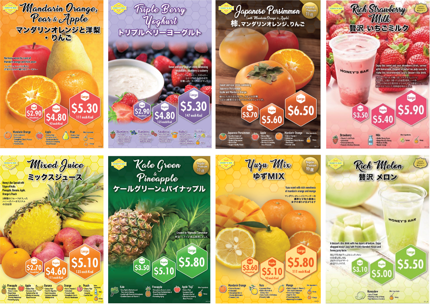 For those who don’t know, HONEY’S BAR is a well-known Japanese juice bar with approximately 30 outlets across major JR East stations. The brand is famous for their signature honey base—a healthier alternative to regular sugar syrup—that goes harmoniously with the freshly blended juice made from the choice of fruits and vegetables.