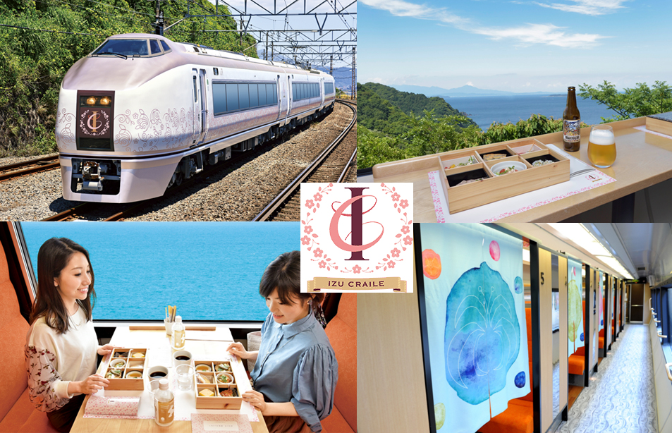 The IZU CRAILE was an elegant resort train offering magnificent views of the ocean, running along the coast of the Izu Peninsula between Odawara Station (小田原駅) and Izukyu-Shimoda Station (伊豆急下田駅). As a restaurant train, special lunch and afternoon tea packages were sold, which became a hit among ladies for girls' trips to Izu. The French-inspired food creations expressed the four seasons with fresh Izu ingredients.