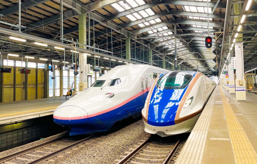 E4 series train (left) and E7 series train (right). (Image credit: JR East Niigata Branch Office)