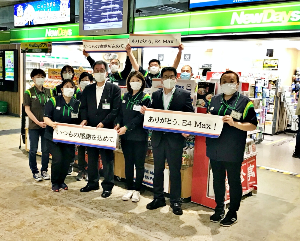“Thank you for always delivering a large number of customers safely. Thank you for always making everyone smile. Thank you for always letting us enjoy the beautiful scenery from the train windows on the 2nd floor. With gratitude, thank you!” —JR East Cross Station (operates NewDays convenience stores)