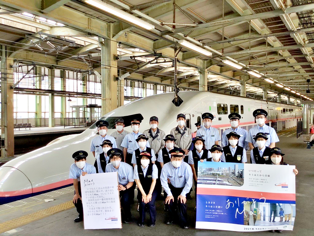 “Setting off from Niigata Station, Max carries everyone’s fond feelings. The delighted faces of children who look at the scenery from the second floor. People waving their hands to say farewell. The sight of the familiar faces of daily commuters. These precious memories of Max will never fade. In preparation for the Last Run, we, the staff and crew of Niigata Station, will also continue running and working hard. Thank you, Max!” —Niigata Station