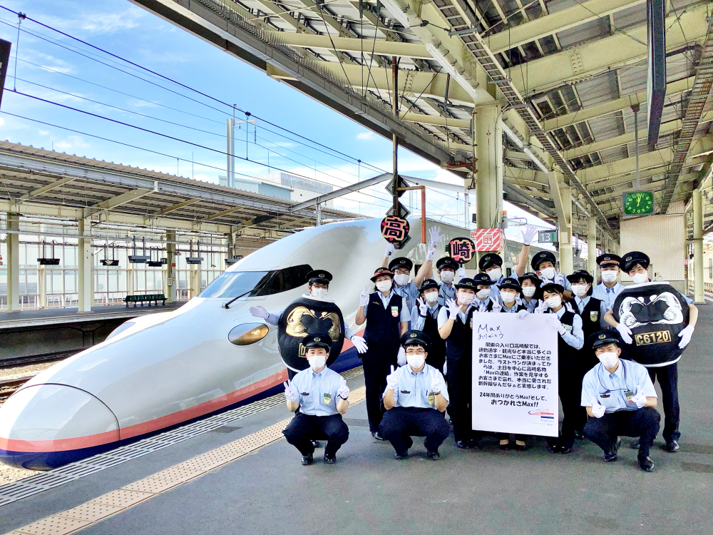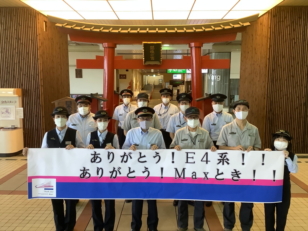 “At Takasaki Station, the gateway to Joshu, many passengers rode the E4 series Max, including commuters, students, and tourists. Especially on weekends and holidays, the station is full of passengers who come to see Takasaki Station’s famous “Max coupling work”, and we could feel the love everyone had for you. Thank you for the past 24 years, and otsukaresa-MAX!”—Takasaki Station