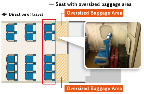 - Luggages with a HWL above 160 cm must be declared in advance with a reserved seat booking. A fee of ¥1,000 will be charged if brought on the train without a reservation.