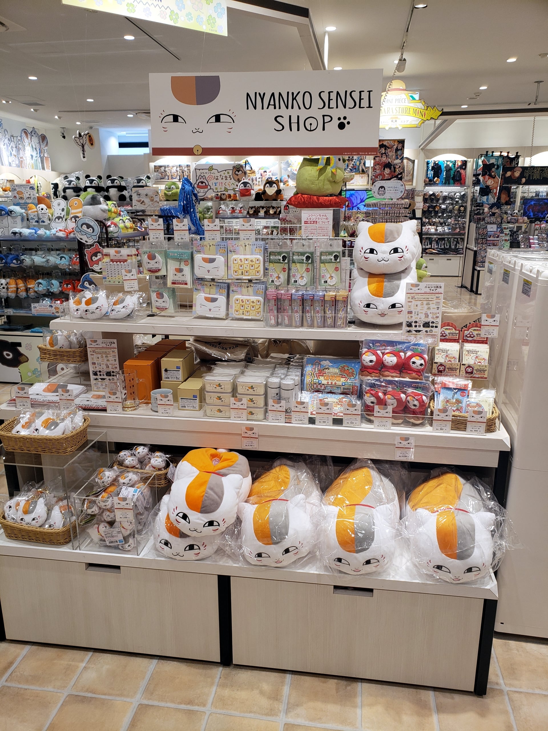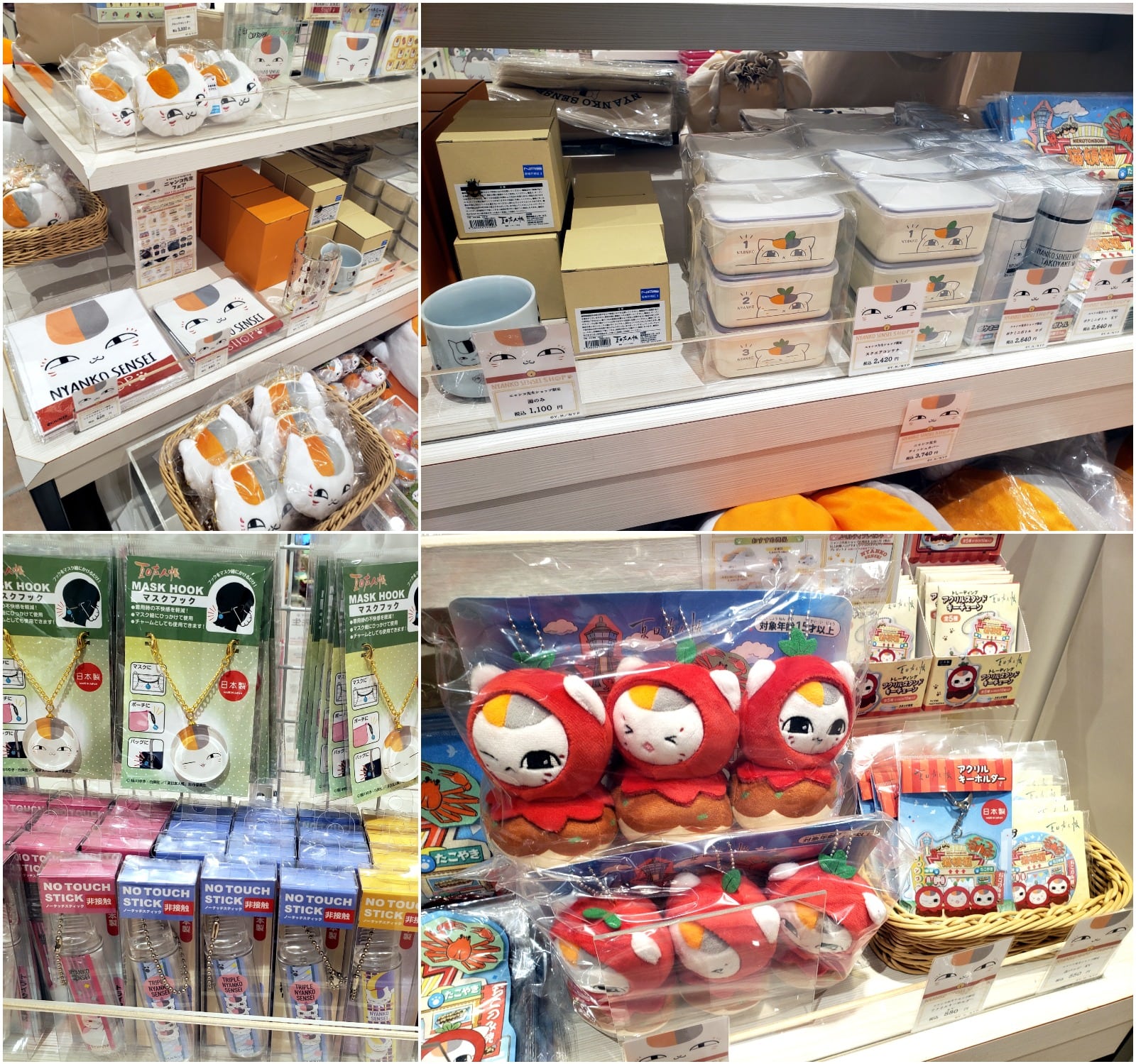 The store closest to my home is the Kyoto Shijo Kawaramachi branch where the Nyanko-sensei display was located on the 3rd floor in front of the One Piece shop. For the Kansai-area release, they even had some cute Nyanko-Sensei dressed as Osaka’s famous soul food takoyaki (たこ焼き octopus balls). There were some new items made specifically for masks, such as charms and cases. Customers with every purchase over ¥2,000 will receive an original postcard and Nyanko-sensei shopping bag to keep as a souvenir. Stock is limited, so they might run out before the end of the event.
